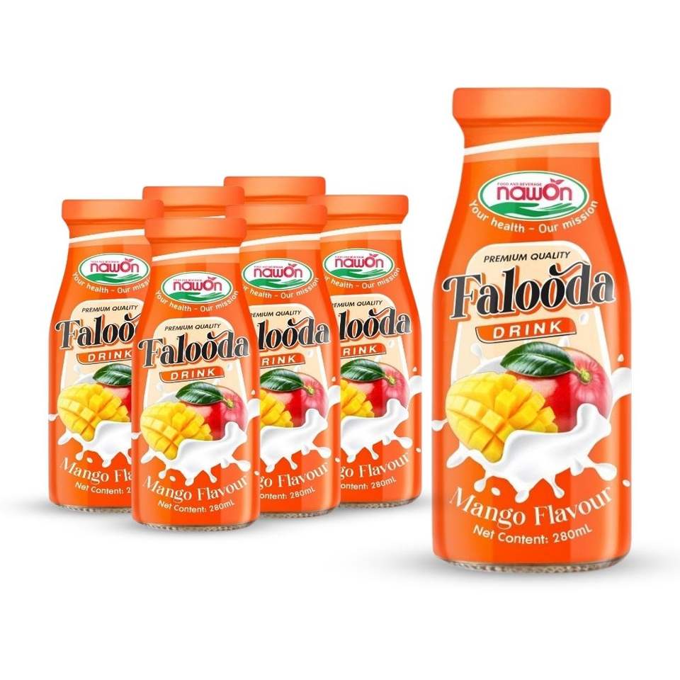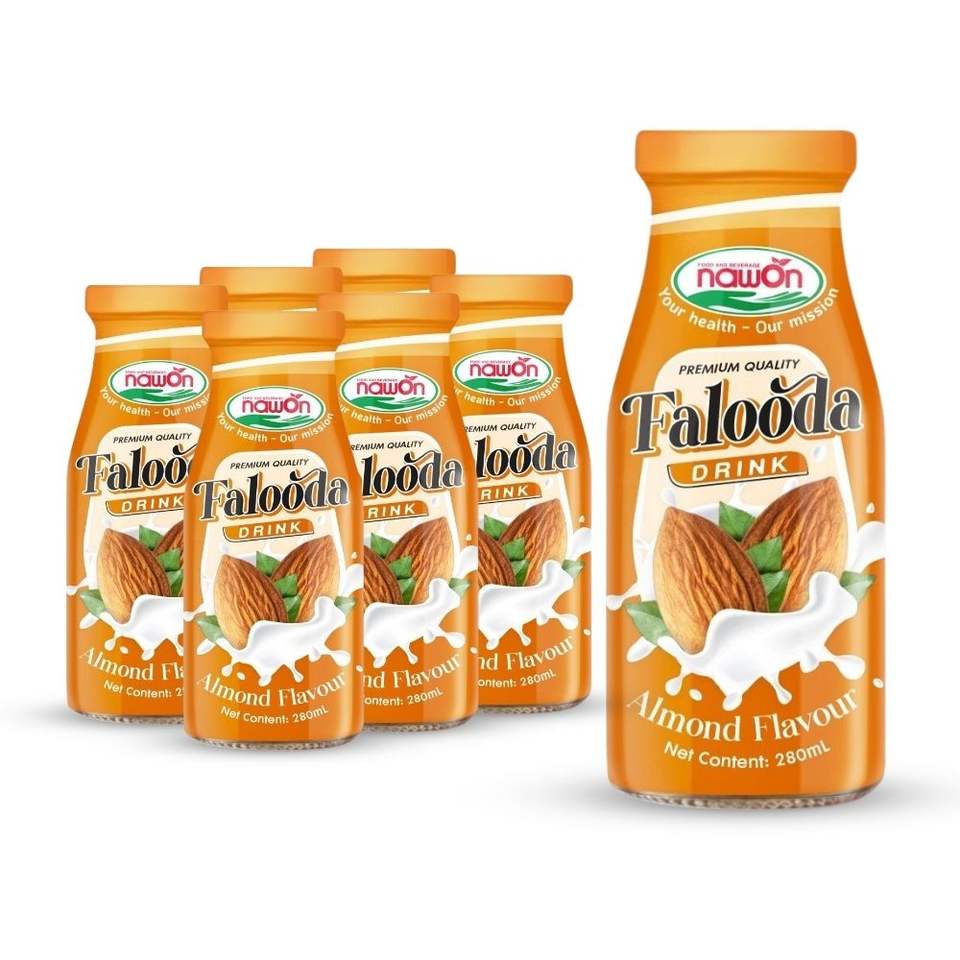 เครื่องดื่มนมออร์แกนิกคุณภาพเยี่ยม ยี่ห้อ NAWON รสชาติดี ตรา FALOODA รสกุหลาบ พร้อมดื่ม บรรจุขวดแก้ว 280 มล.