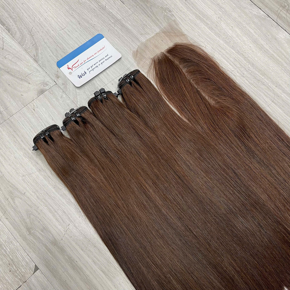 ต่อผมเวียดนามคุณภาพสูงสุด สีน้ำตาลแบบ Super Double Drawn ขนาด 10–14 นิ้ว มีสินค้าพร้อมส่ง