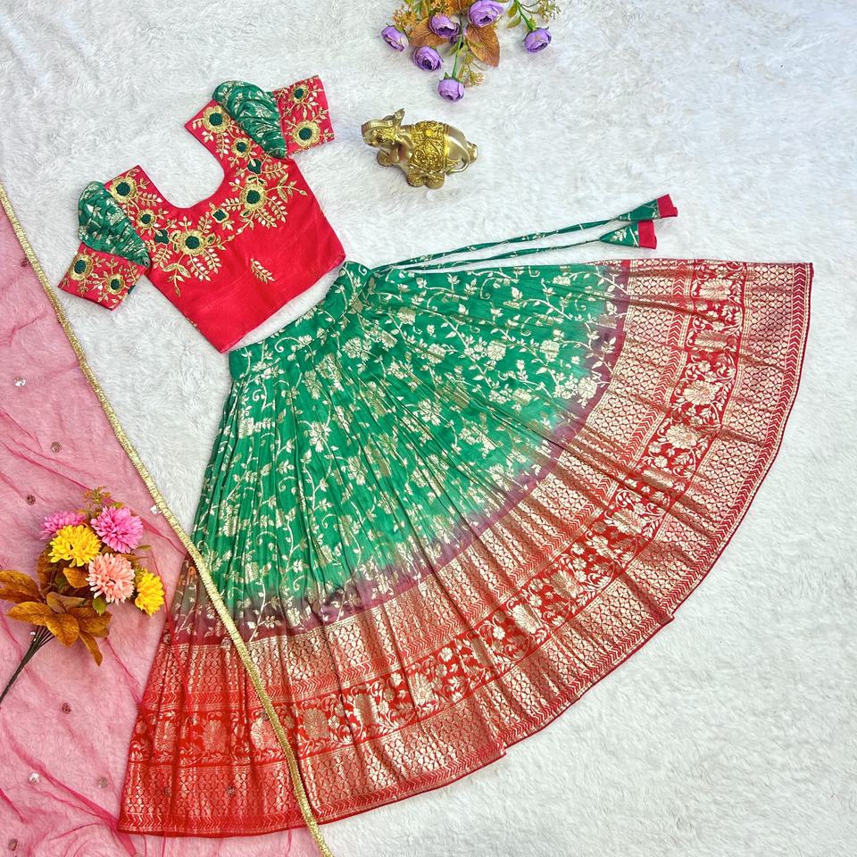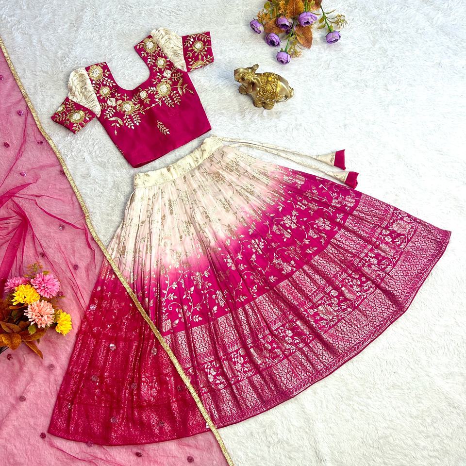 เสื้อเลฮงก้าลาย้เหนียวเย็บสวยงามคุณภาพสูงพร้อมดูปัตตาสําหรับเด็กมีจําหน่ายในปริมาณมาก