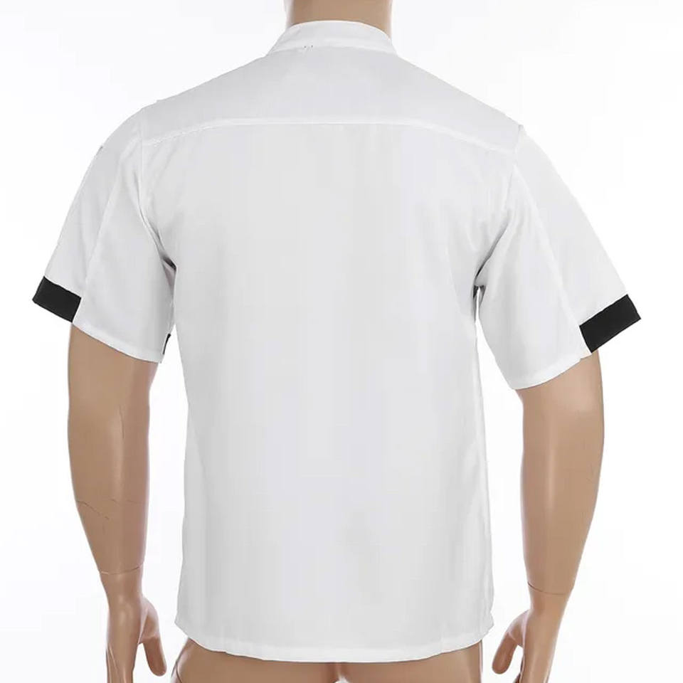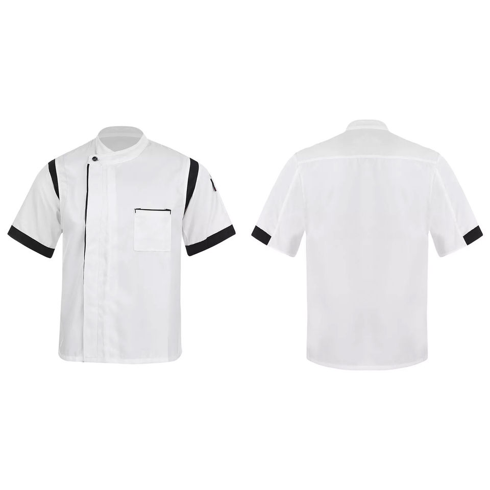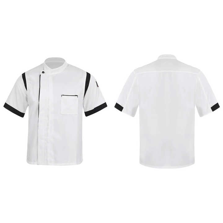 เสื้อเชฟแขนสั้นสีขาวคุณภาพสูง ชุดทำงานสำหรับพนักงานร้านอาหารและโรงแรม เสื้อเชฟแบบสั้น แจ็คเก็ต และเสื้อคลุม