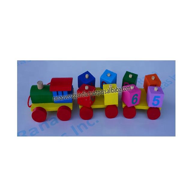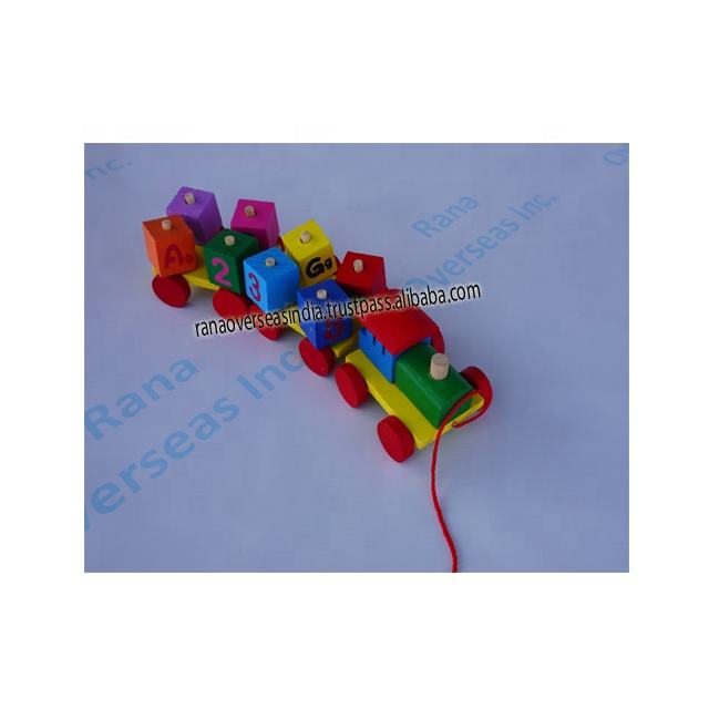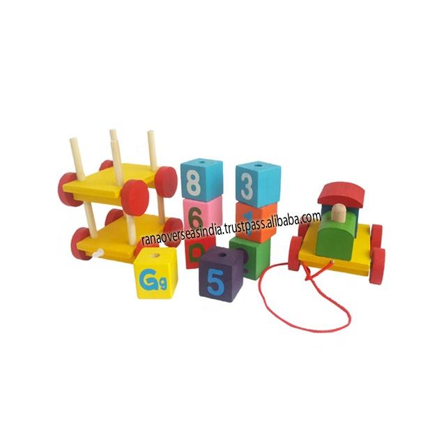 รถไม้ของเล่น3คันสำหรับพัฒนาทักษะรถลากตัวอักษรและตัวเลขทำมือ