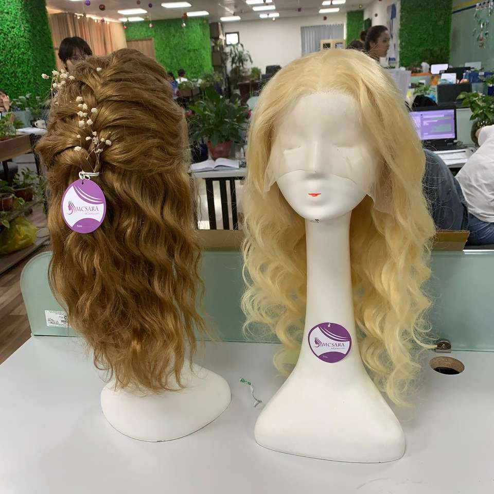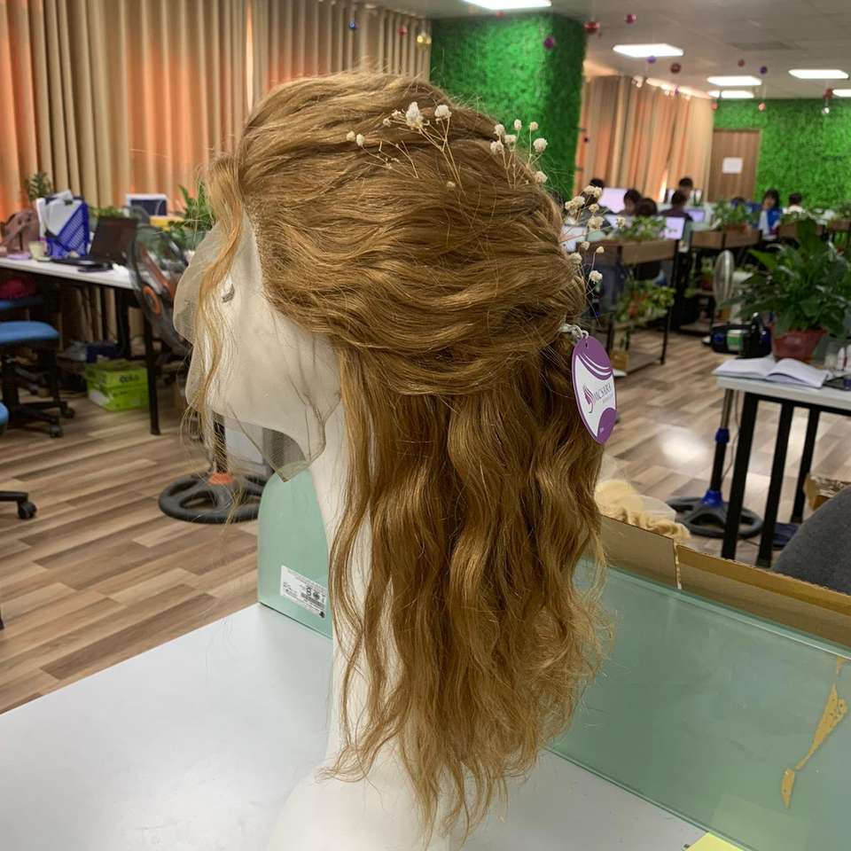 วิกผมเส้นผมคุณภาพสูง,ผมจริงด้านหน้าเป็นลอนธรรมชาติสีบลอนด์และสีน้ำตาลขนาด20นิ้วราคาถูกดีมาก