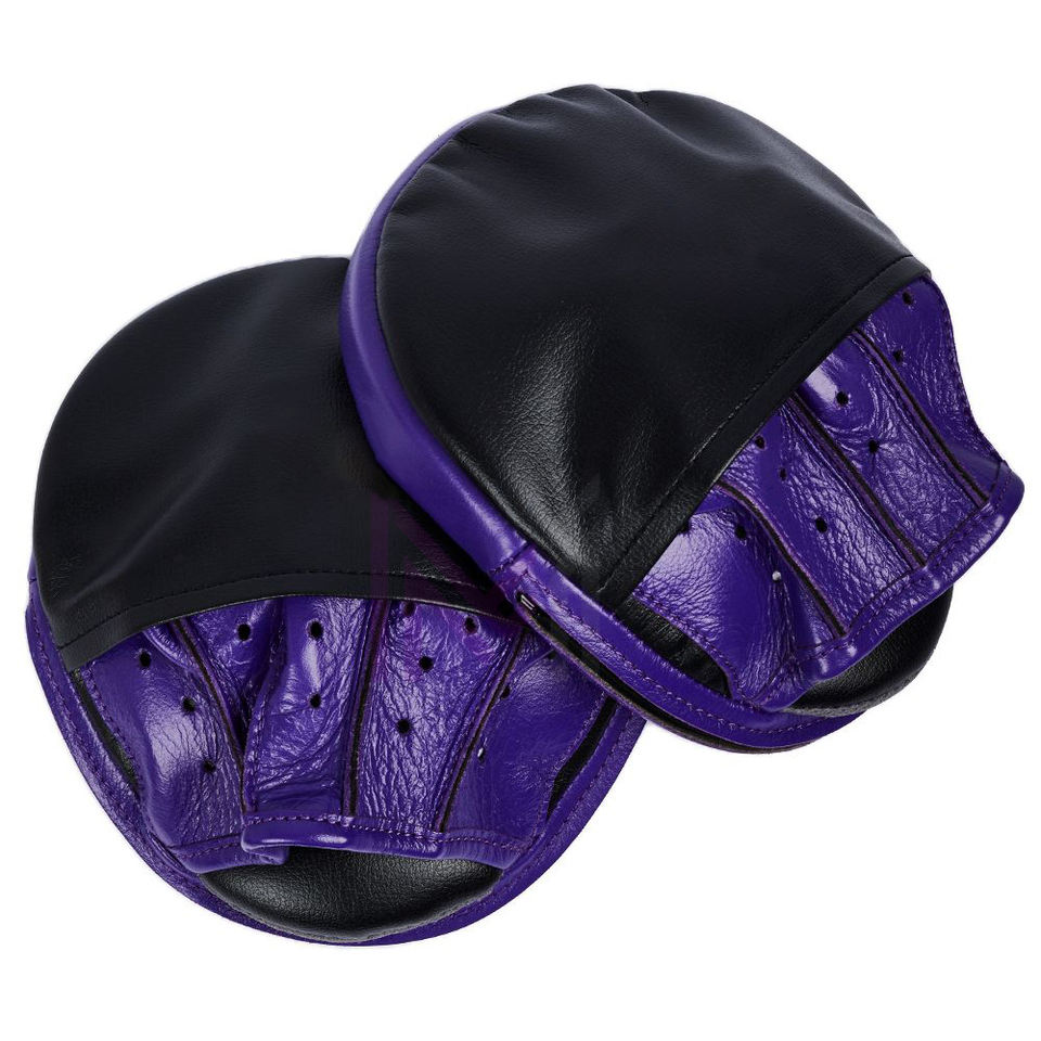 นวมซ้อมมวยสีดำม่วงคุณภาพสูง หนังแท้ สำหรับฝึกซ้อมระดับมืออาชีพ รูปทรงโค้ง รับผลิตตามแบบ OEM แผ่นรองซ้อมเตะต่อยคิกบ็อกซิ่ง
