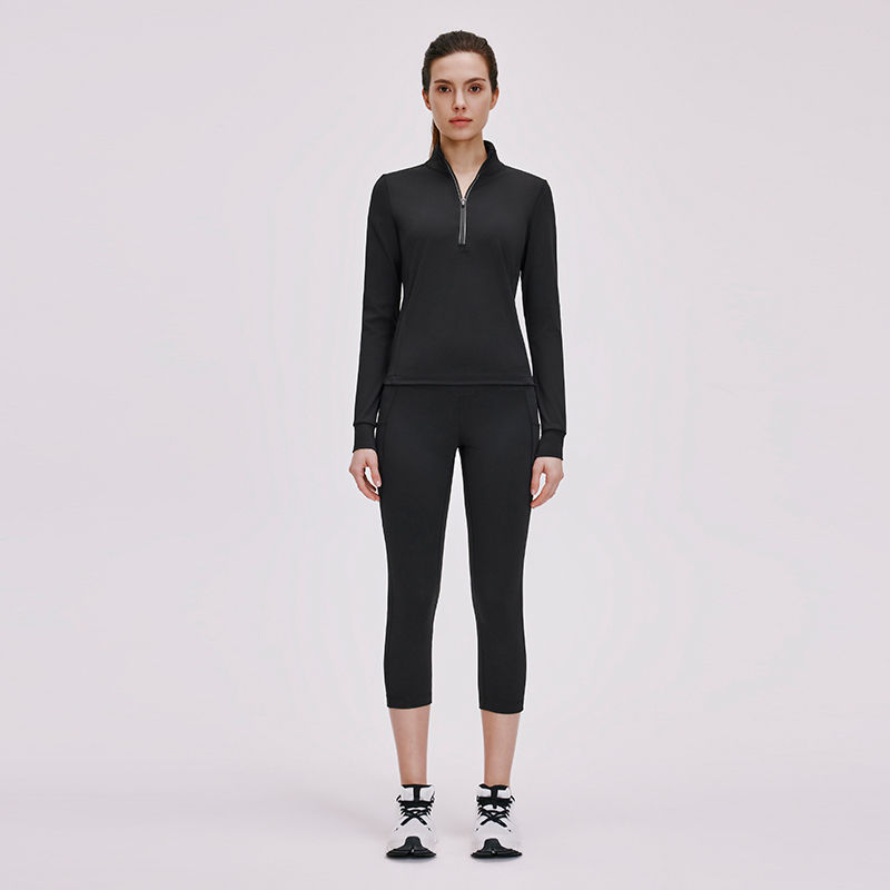เสื้อกีฬาแขนยาวซิปสำหรับผู้หญิงเสื้อสเวตเชิ้ตโพลีสแปนเด็กซ์ทนทานเสื้อกอล์ฟ1/4แบบมีซิป
