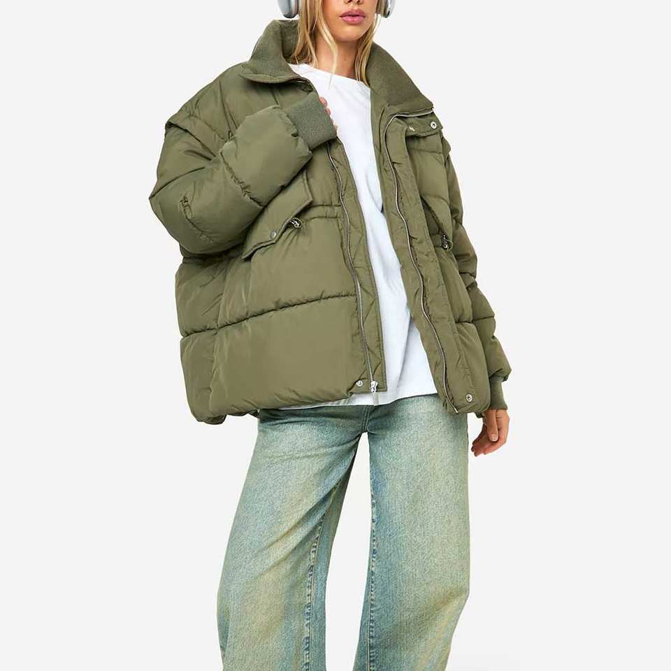 แจ็กเก็ตทรงปลาปักเป้าสำหรับผู้หญิงเสื้อแจ็กเก็ตทรงสลิมฟิตมีซิปแขนยาวแฟชั่นแบบกำหนดเอง