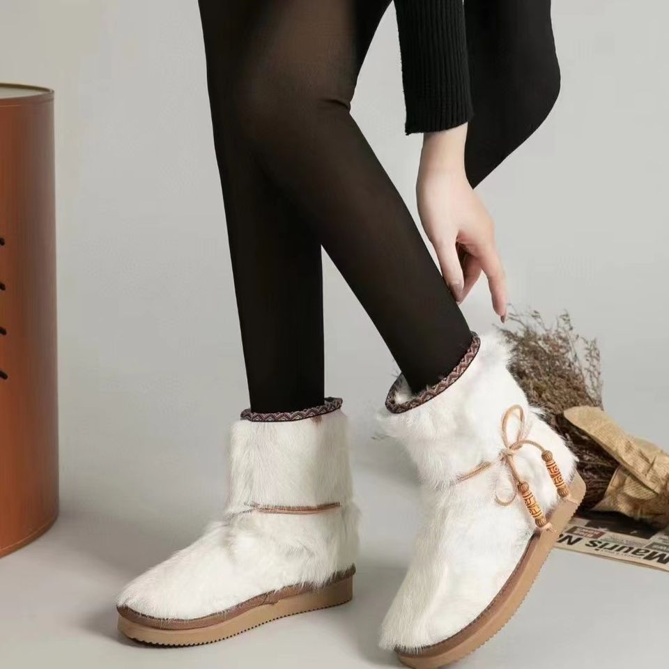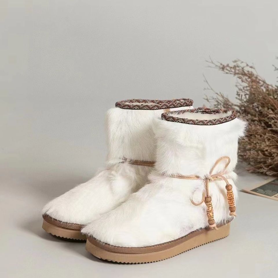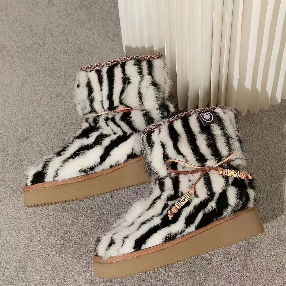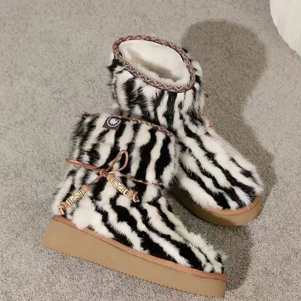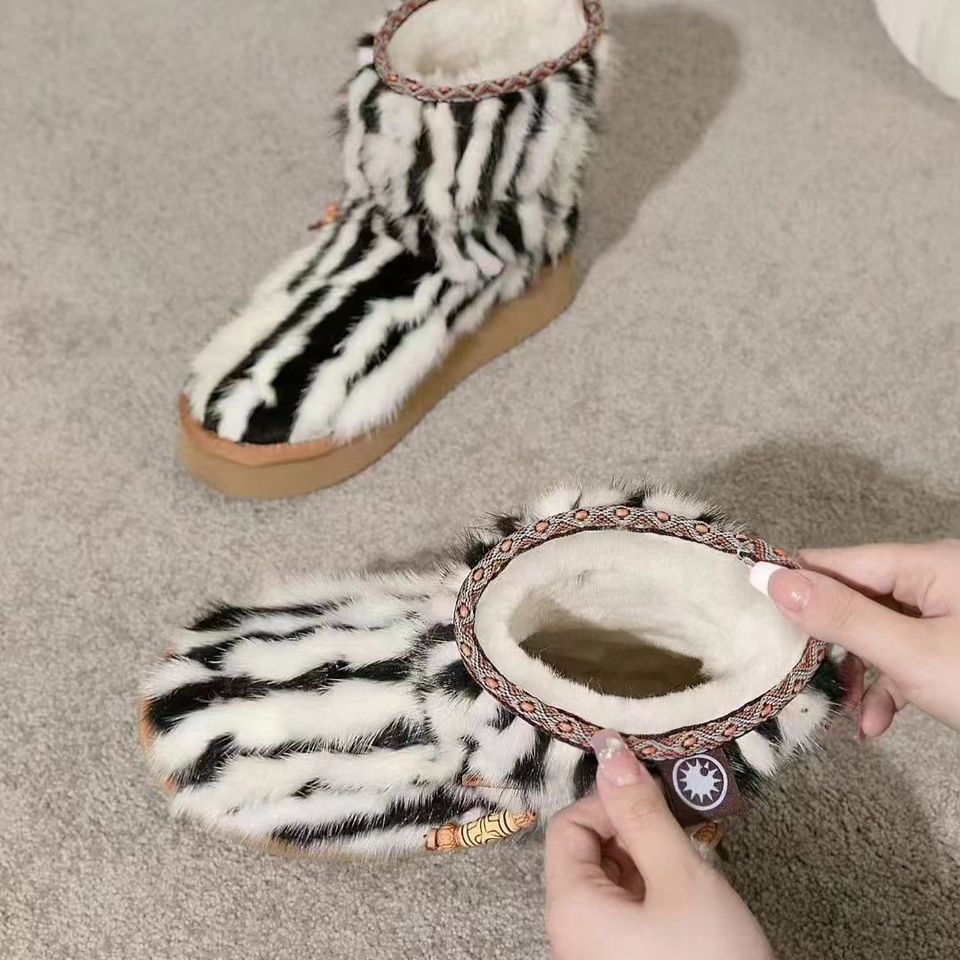 รองเท้าลำลองหุ้มข้อสำหรับผู้หญิงฤดูหนาวรองเท้าบูทกันหิมะทำจากขนสัตว์ขนมิงค์หนาให้ความอบอุ่น