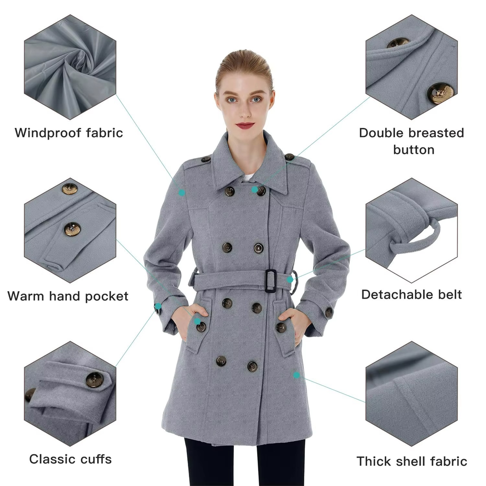 เสื้อโค้ทยาวผ้าขนสัตว์สำหรับผู้หญิง