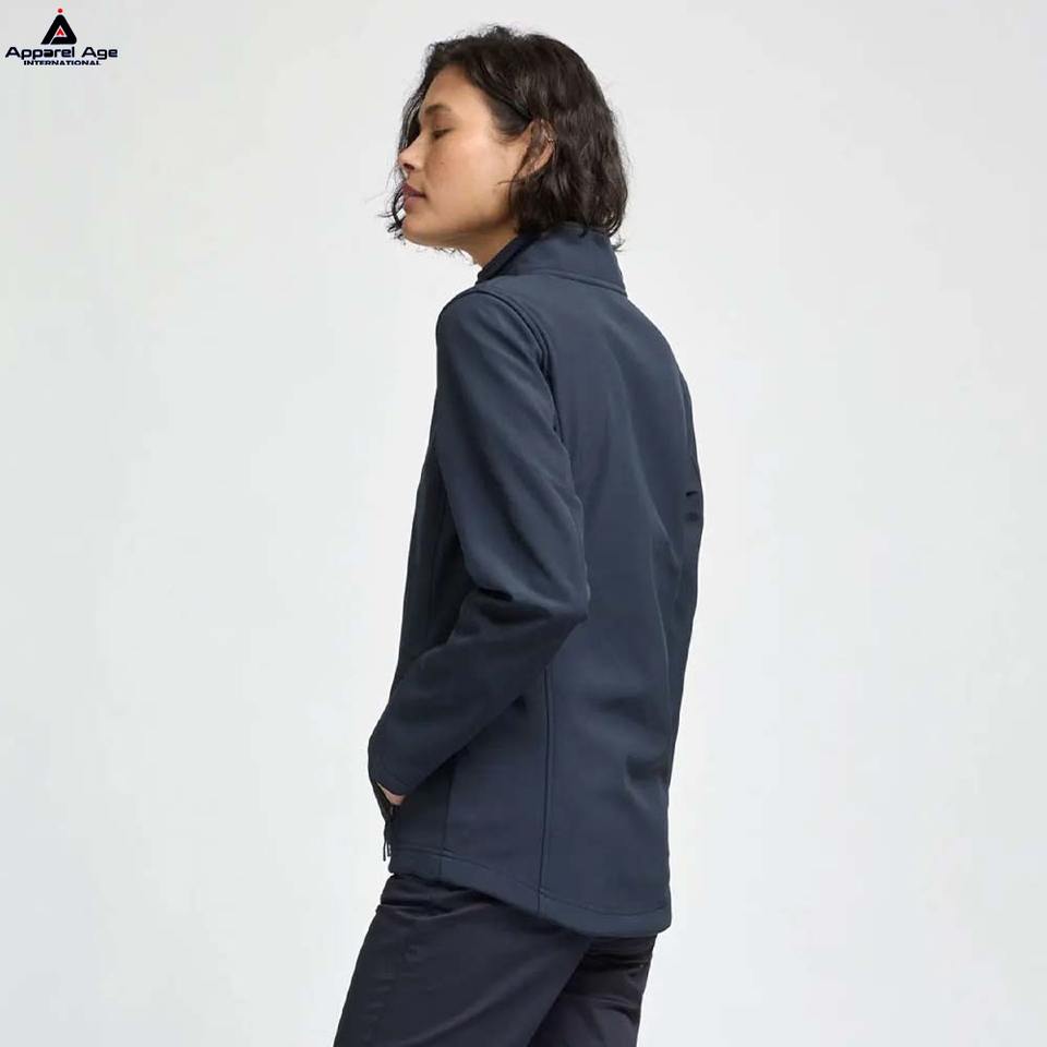 เสื้อแจ็คเก็ตซอฟต์เชลล์ผู้หญิงคุณภาพสูง น้ำหนักเบา ยาว ผ้าหนังแกะไร้รอยต่อ ระบายอากาศ กันลม ซิป สำหรับกีฬากลางแจ้ง
