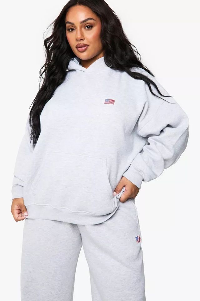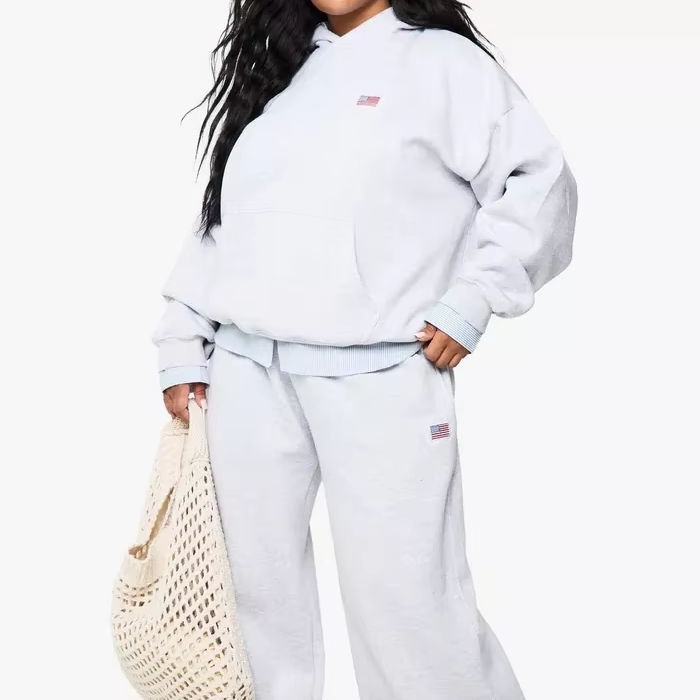 ชุดวอร์มผู้หญิงแบบสวมหัวมีฮู้ดปักลายโอเวอร์ไซส์คุณภาพสูง
