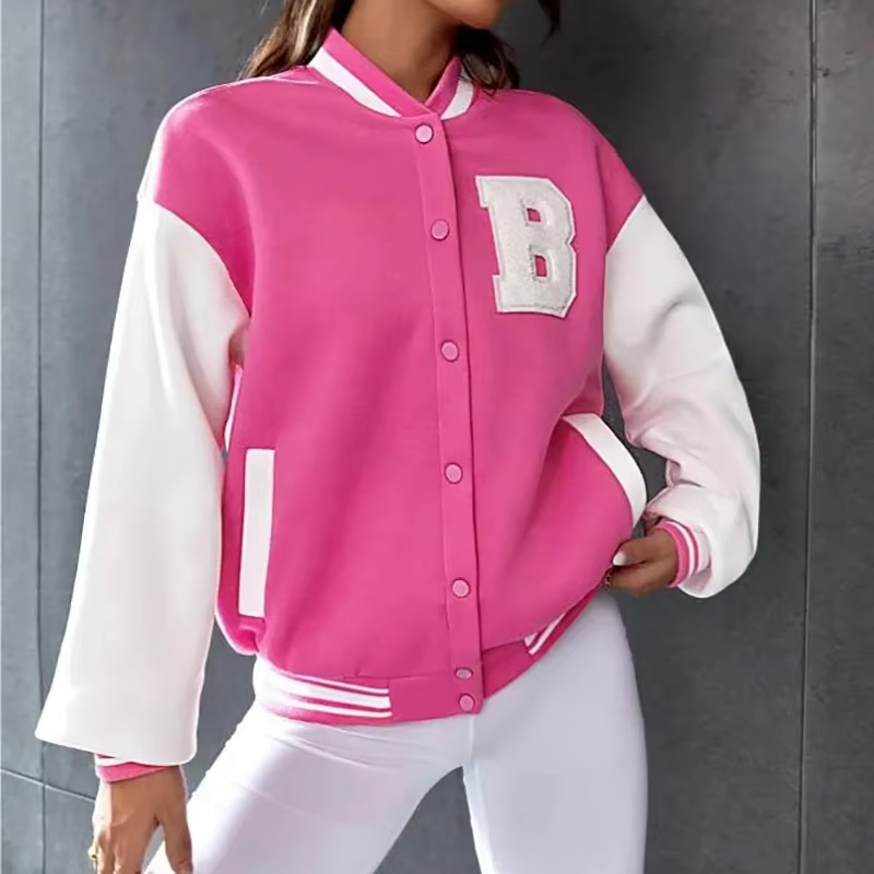 แจ็คเก็ตวาร์ซิตี้ผู้หญิงคุณภาพสูง แขนยาว ทรงครอป แจ็คเก็ตเบสบอลที่ดีที่สุดสำหรับผู้หญิง ขายส่งราคาดี