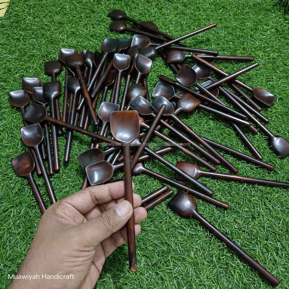ช้อนไม้สีน้ำตาลเข้มช้อนตักชากาแฟอุปกรณ์ทำอาหารในครัว