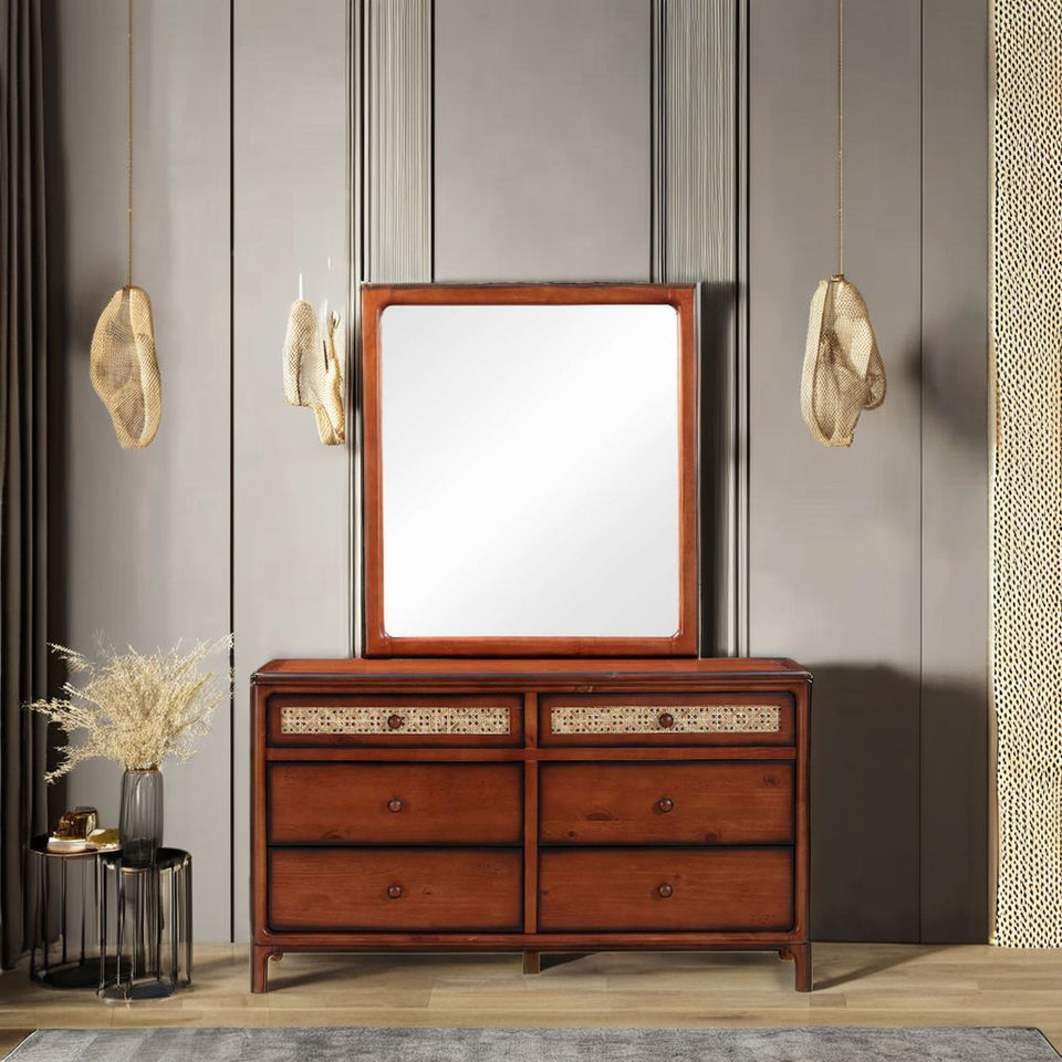 ตู้ลิ้นชักไม้พร้อมกรอบกระจก6ลิ้นชักชุดเฟอร์นิเจอร์ห้องนอนดีไซน์ทันสมัย