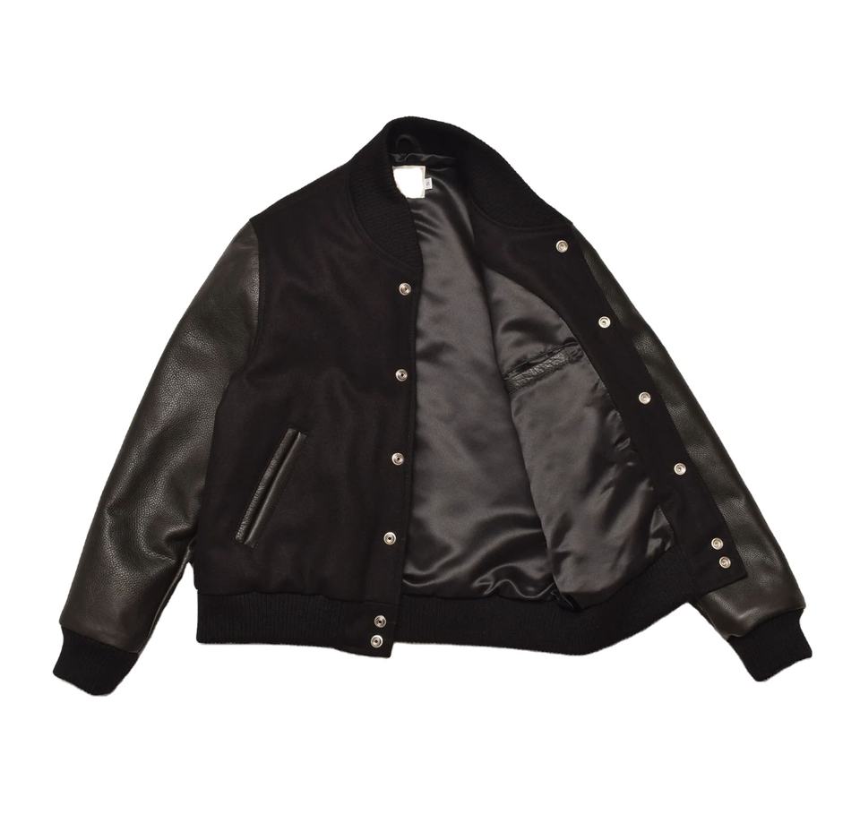 แจ็คเก็ตบอมเบอร์ผ้าขนสัตว์แขนเสื้อหนังแท้แจ็คเก็ตคอลเลตเทอร์แมนขายส่ง