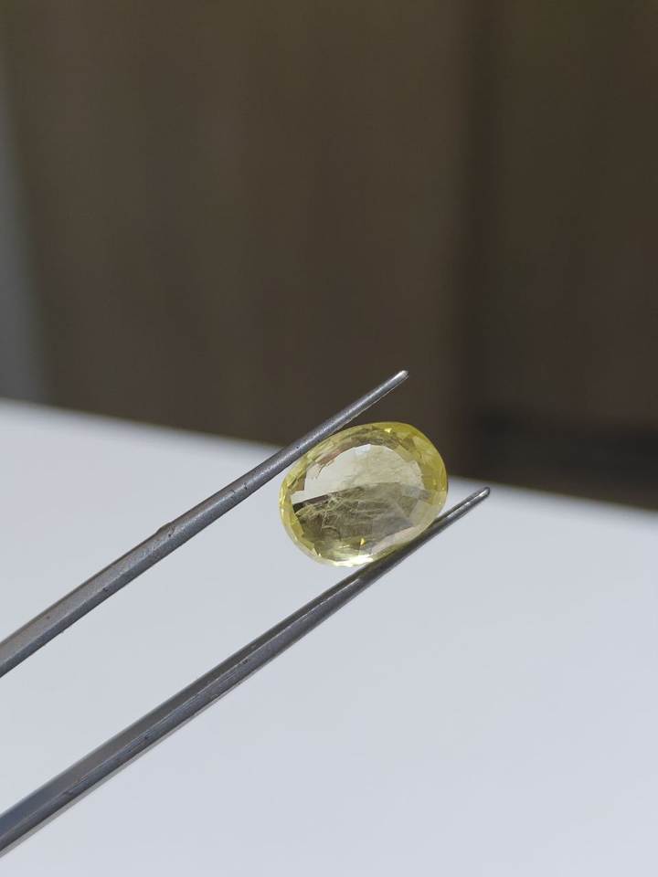 พลอยแซฟไฟร์สีเหลืองคุณภาพสูง 9.80 กะรัต รูปทรงวงรี สำหรับงานเครื่องประดับชั้นดีเพื่อการส่งออก