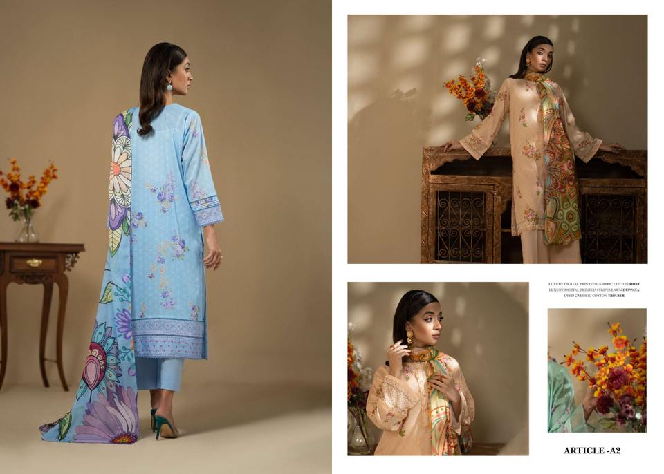 ชุดเดรสผ้าฝ้ายพิมพ์ลายดีไซน์เนอร์สำหรับผู้หญิงชุดฤดูร้อนแบบไม่เย็บลายสำหรับใส่ในสนามหญ้าดิจิตอลแบบปากีสถานตัวเลือกขนาดพิเศษ