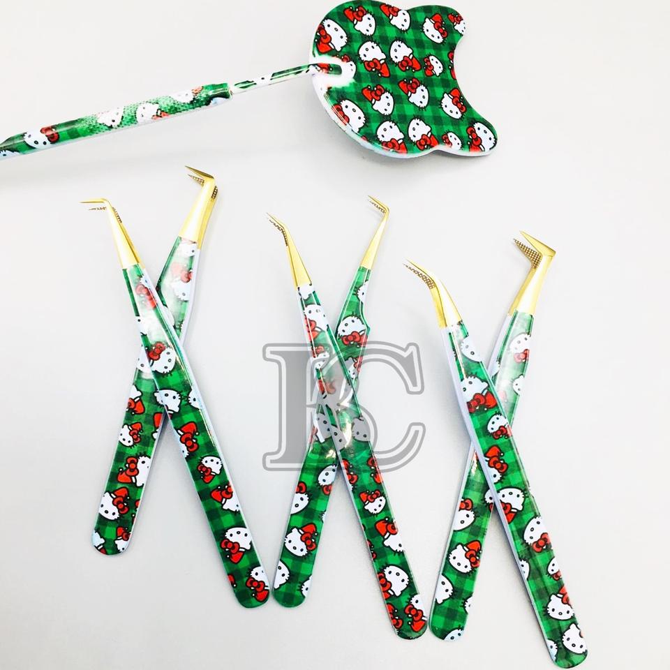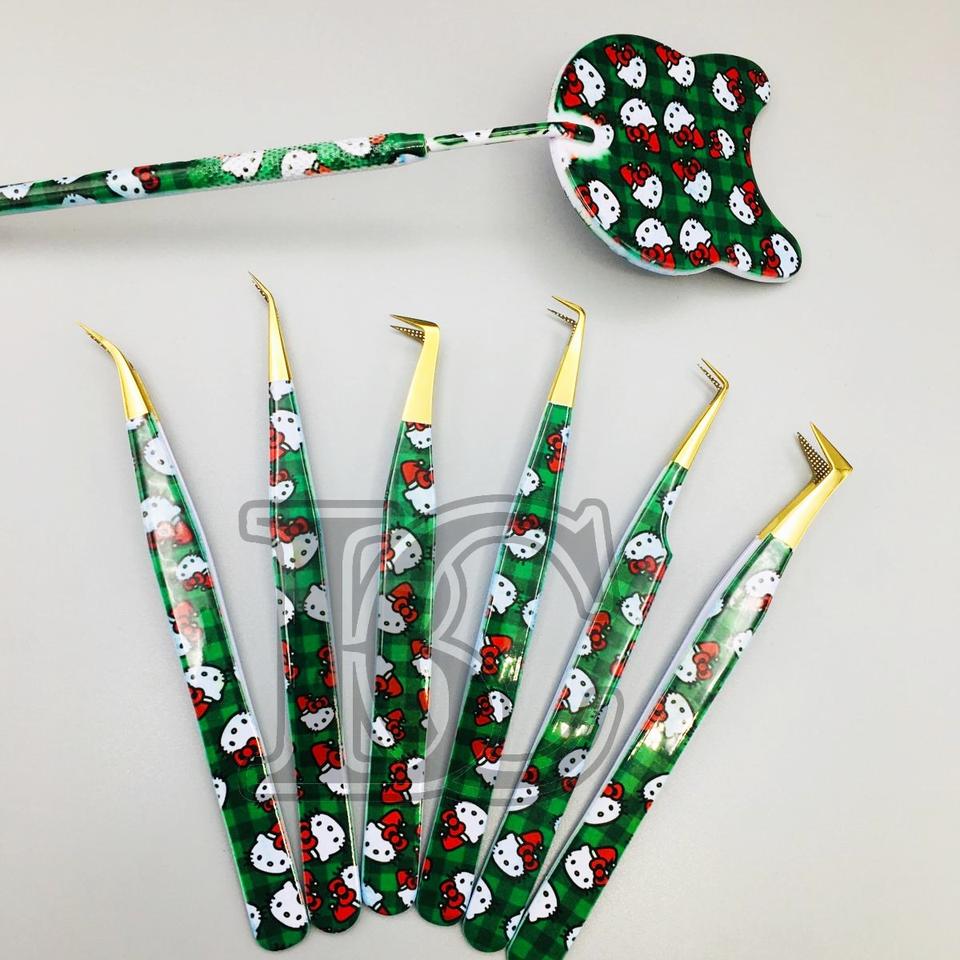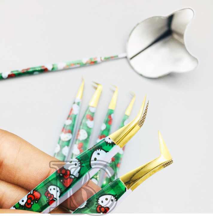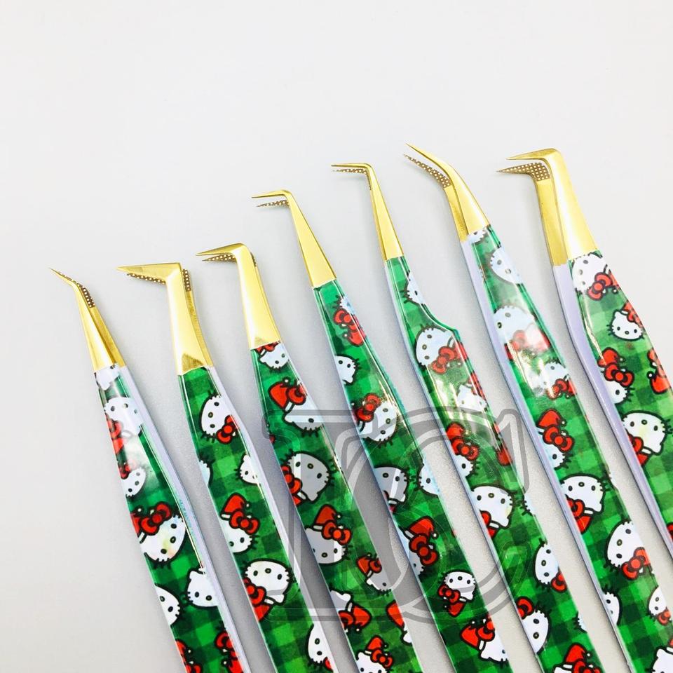 แหนบต่อขนตาพิมพ์กระดาษ Hello Kitty พร้อมปลายสีทองแหนบสแตนเลสทนทาน