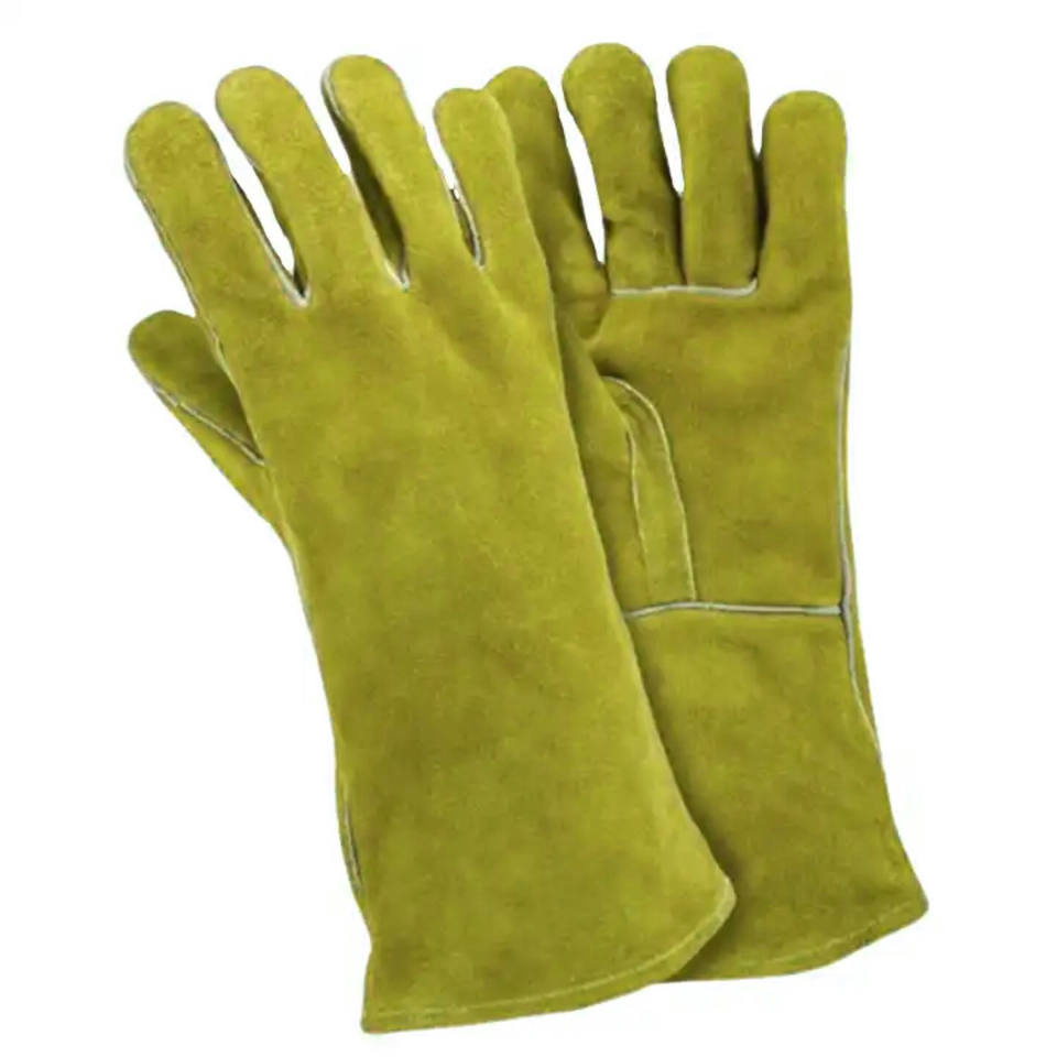 ถุงมือหนังวัวแยกเปลวไฟกันความร้อนเสื้อผ้าเพื่อความปลอดภัยสะท้อนแสงสำหรับป้องกันมือดับเพลิง