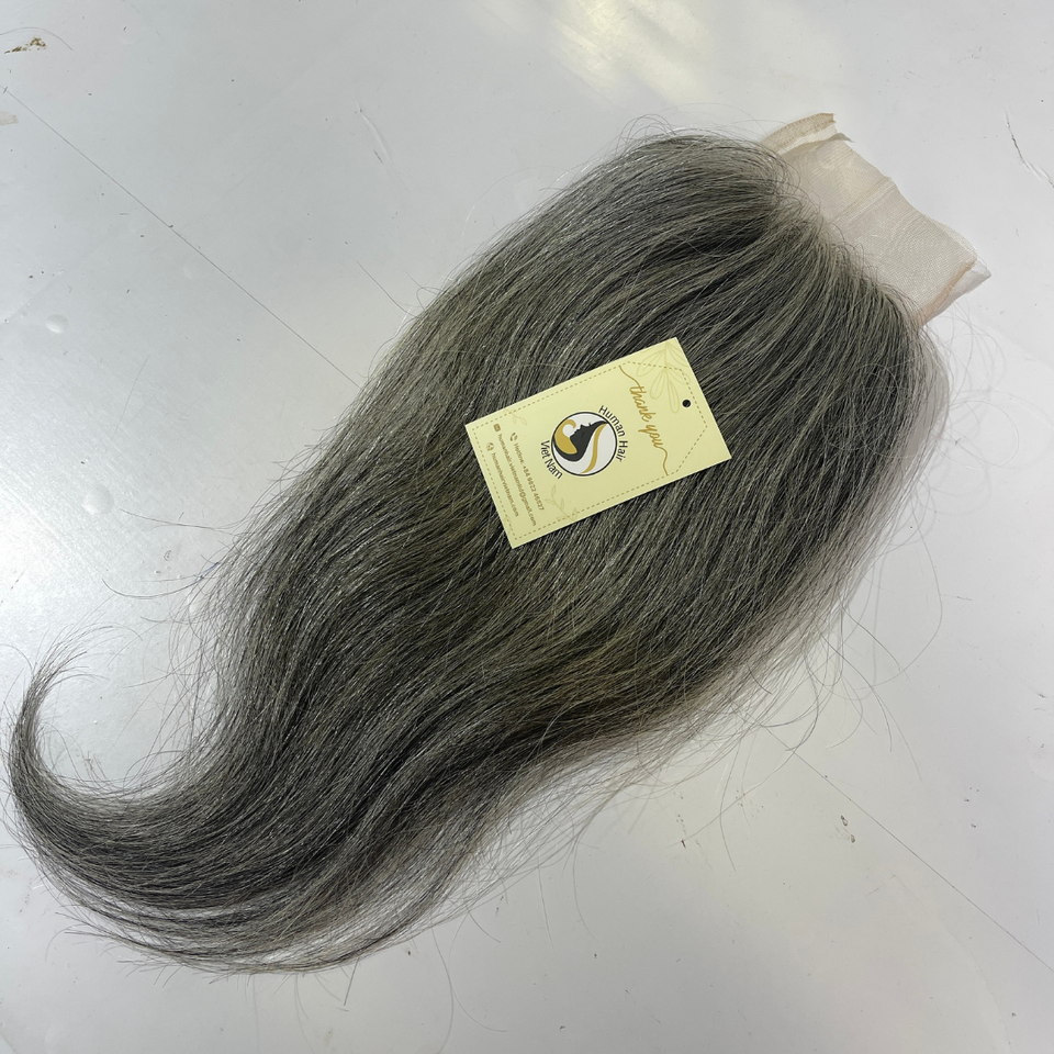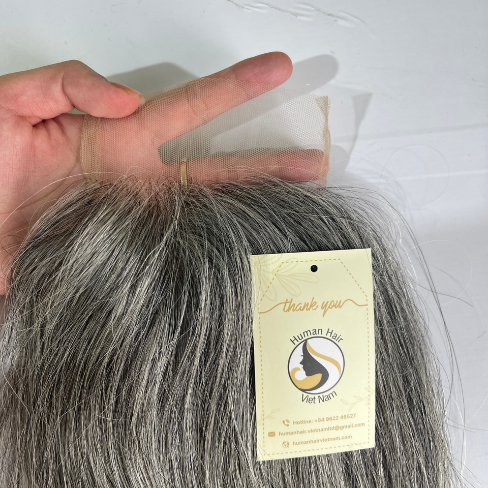 ส่วนบนหนังกำพร้าชิดเวอร์จินเวียดนามมนุษย์ผมขยายขายส่งเวอร์จินผมสีเทา Hd ลูกไม้7x7ปิด