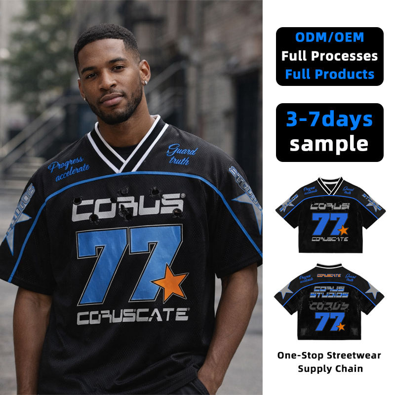 เสื้อยืดฮิปฮอปลำลองผู้ชายยอดนิยม ผ้าสแปนเด็กซ์/โพลีเอสเตอร์ ถักน้ำหนัก 200 กรัม พิมพ์ลายดิจิทัล แห้งเร็ว บริการ OEM รับผลิตแบบแพทช์เวิร์คตามสั่ง