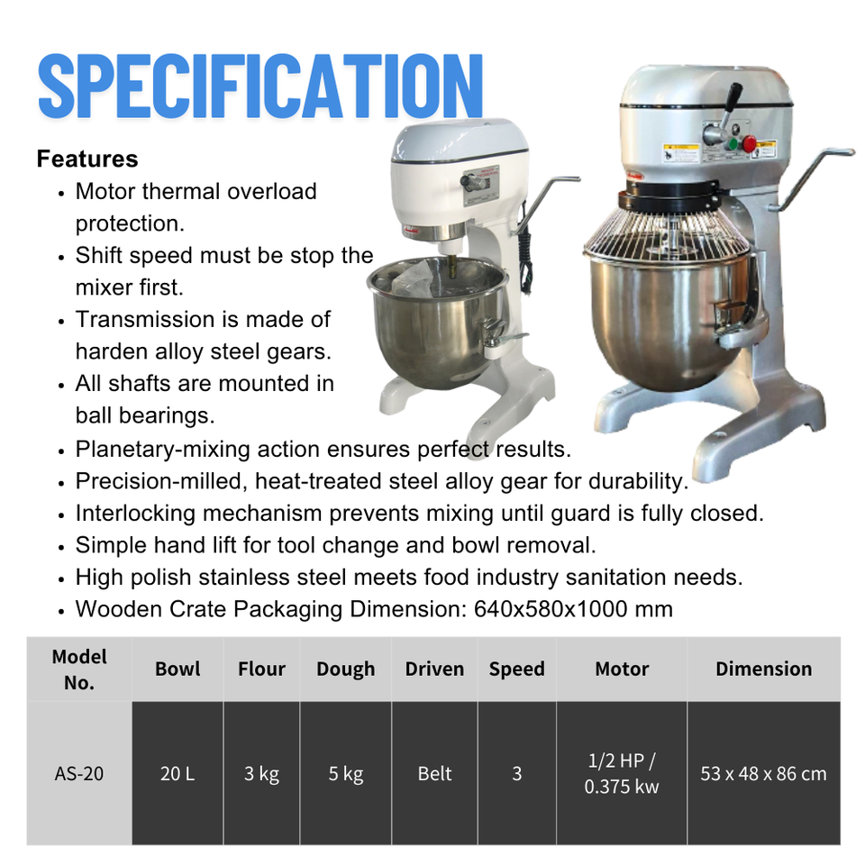 เครื่องผสมแป้งแบบดาวเคราะห์ขนาด 20 ลิตร เครื่องผสมเค้ก