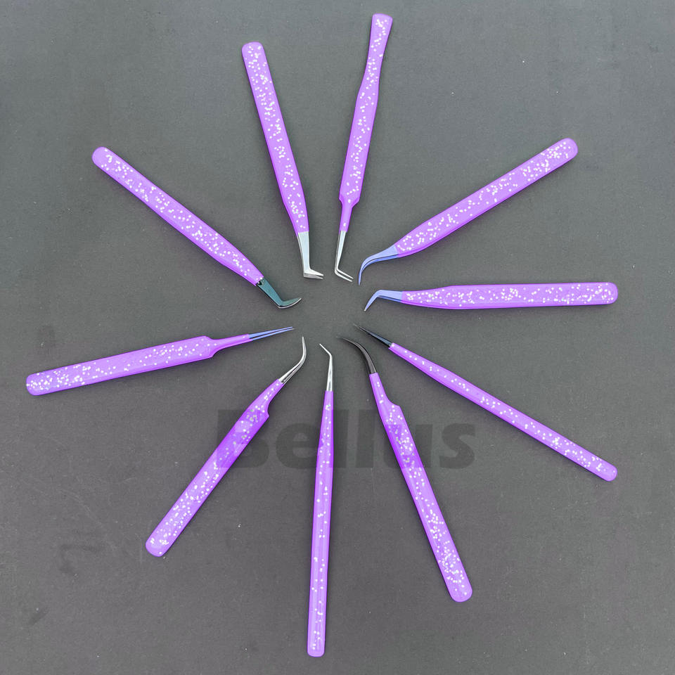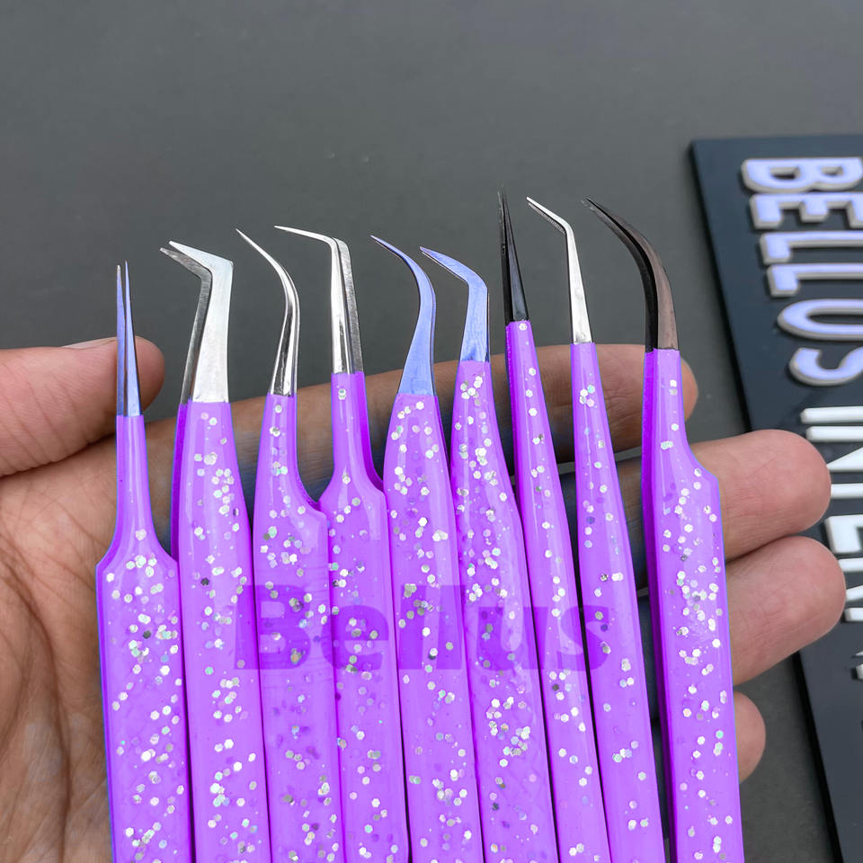 ชุดปากคีบขนตาแบบมืออาชีพทำจากเส้นใยกลิตเตอร์มีคุณภาพสูงอุปกรณ์แต่งขนตาเพิ่มวอลลุ่มทำจากสแตนเลส