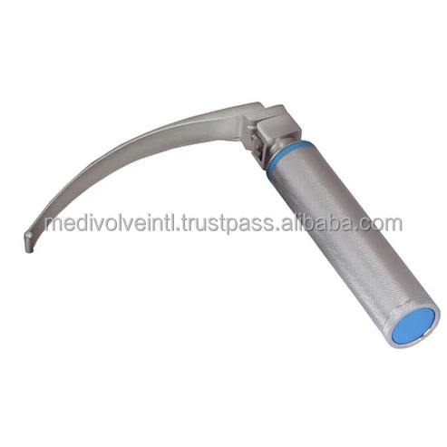 ชุดเครื่องมือส่องกล่องเสียงไฟฟ้า LED Macintosh ยี่ห้อ Medivolve รุ่นยอดนิยม พร้อมใบมีด 4 แบบ ใช้ซ้ำได้ สำหรับใส่ท่อช่วยหายใจ ทำจากสแตนเลส ได้รับมาตรฐาน CE ISO รับประกัน 1 ปี