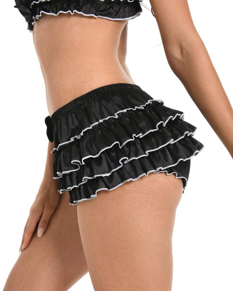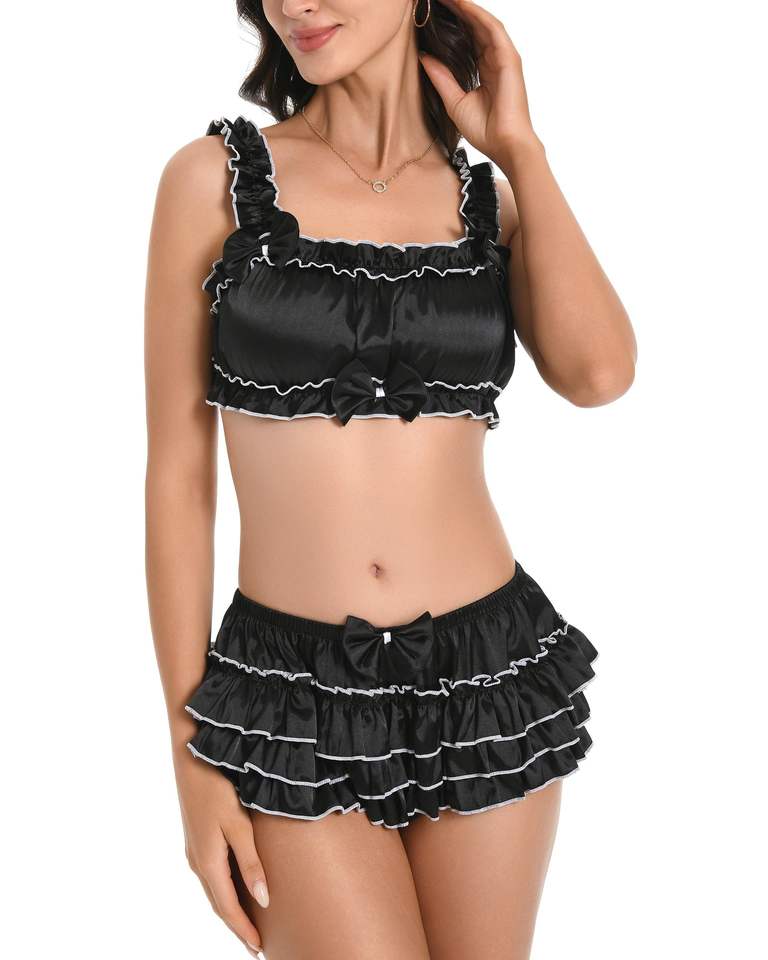 Keywords:Womens Ruffle Lingerie Set Frilly Bow Bra Top and French Style Panties