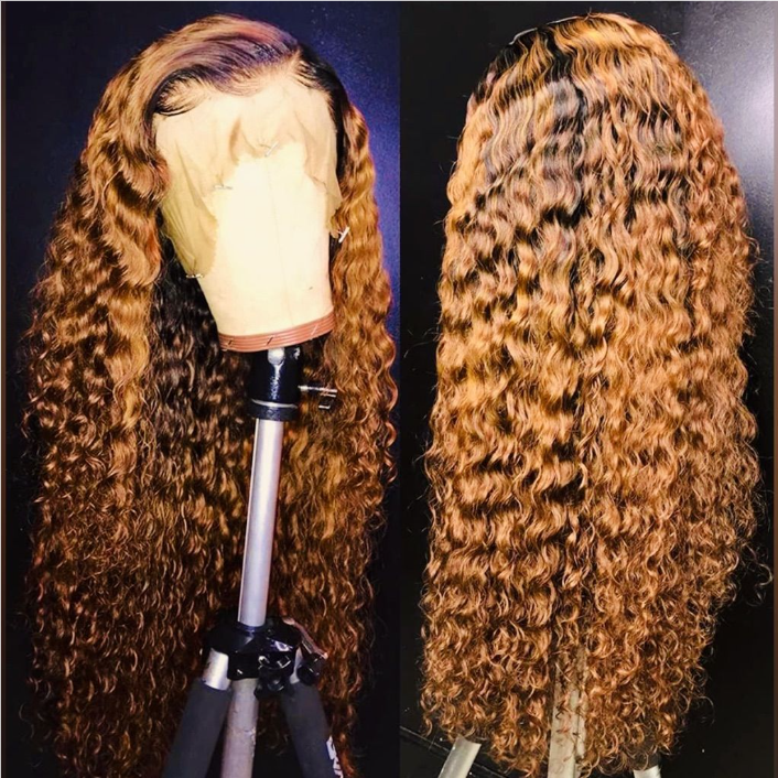 วิกผมลอนแท้100% วิกผมลอนใส13x4สีไฮไลต์มีความหนาแน่นของ200% มีสีใส