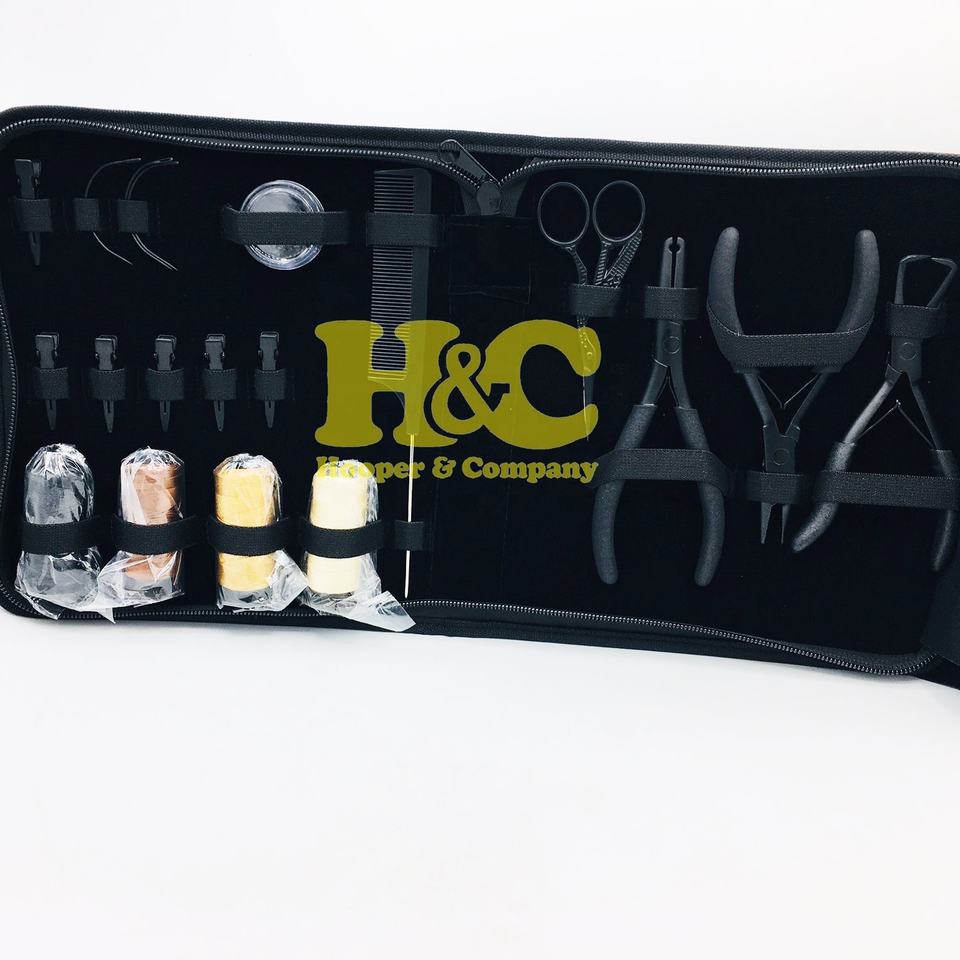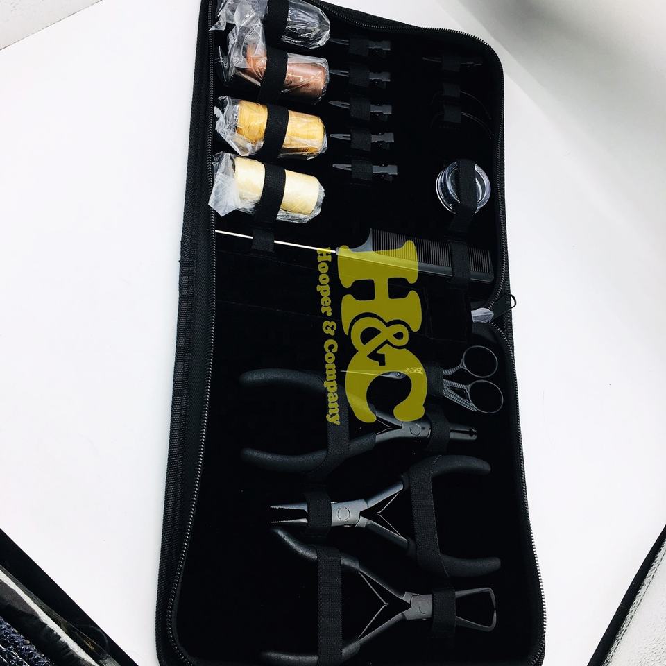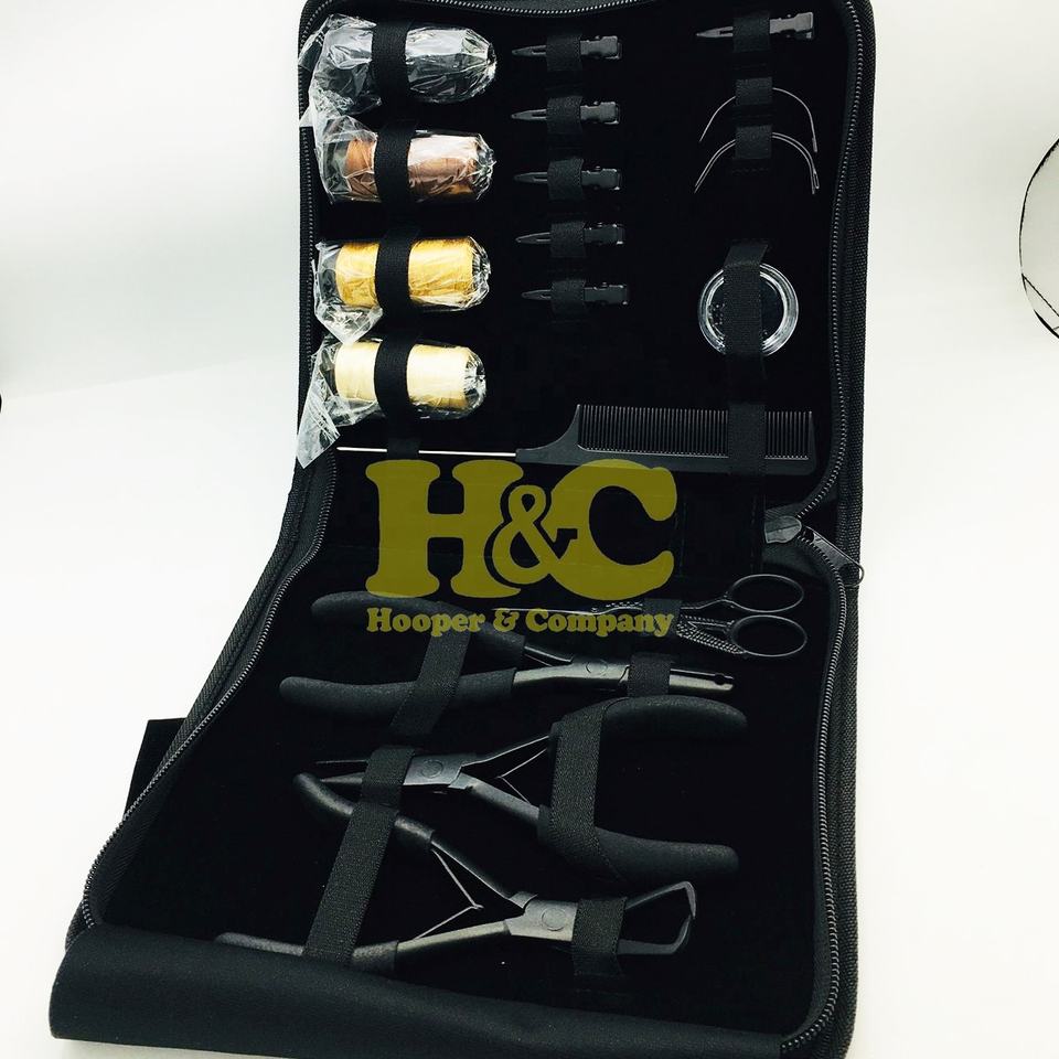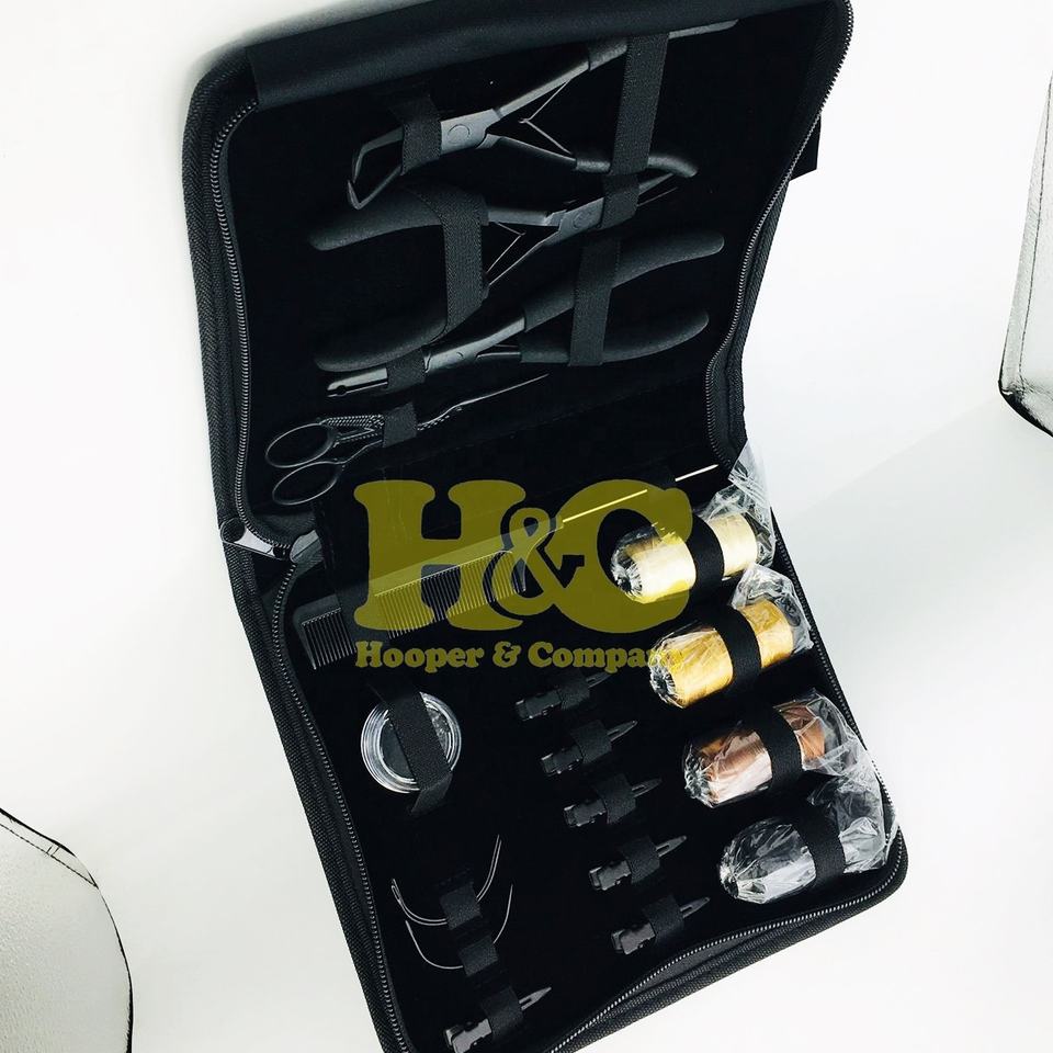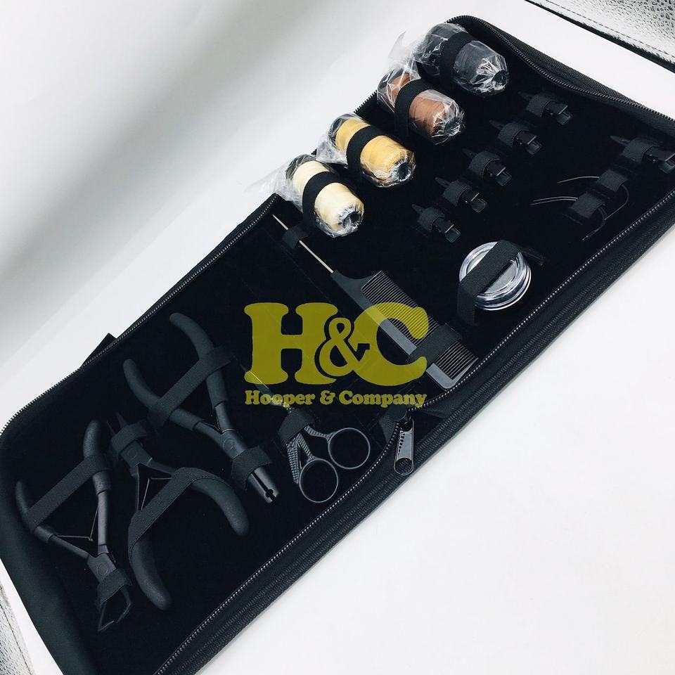 ชุดเครื่องมือคีมต่อผมสเตนเลสสตีลสำหรับใช้งานเชิงพาณิชย์ HOOPER and COMPANY พร้อมไมโครบีดส์ ด้าย และกระเป๋า