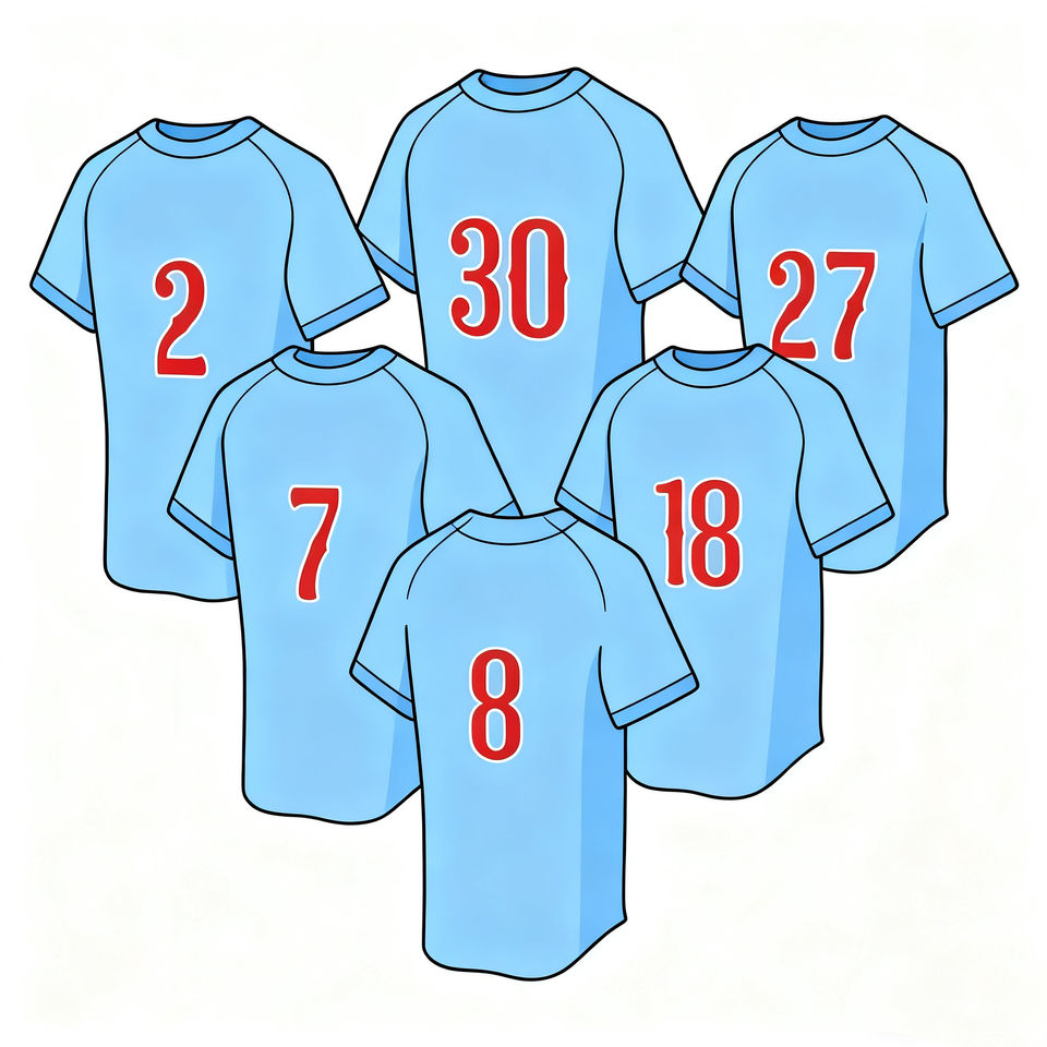 ตำแหน่งโลโก้:ด้านหน้า, ด้านหลัง, แขนเสื้อด้านซ้าย, แขนเสื้อด้านขวา