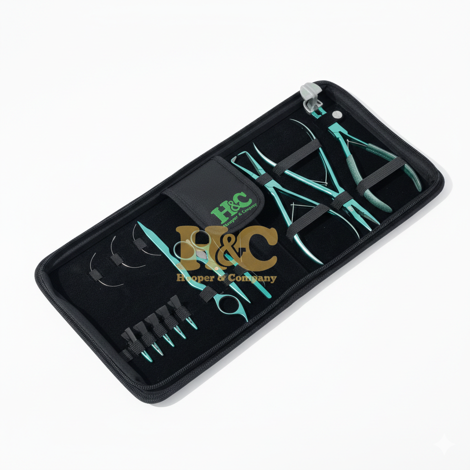 ชุดอุปกรณ์ทำผมขายดี HOOPER COMPANY สแตนเลสสตีล สำหรับต่อผมมืออาชีพ สีเขียว พร้อมโลโก้ฟรี คีมต่อผม คีมตัดเทป
