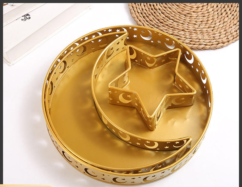 ถาดเสิร์ฟอาหารโลหะคุณภาพสูงลายพระจันทร์และดวงดาวสำหรับเทศกาลอีดมูบารัค ของตกแต่งบ้านสำหรับงานเลี้ยงชาวมุสลิม ขายดีอันดับต้นๆ