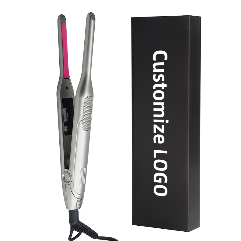 เครื่องหนีบผมไฟฟ้าขนาดเล็กขายดี รุ่น Pixie Curls แผ่นไทเทเนียม MCH พร้อมไฟ LED ปรับแต่งโลโก้ได้ เหมาะสำหรับผมบาง ใช้ในรถบ้านและโรงแรม
