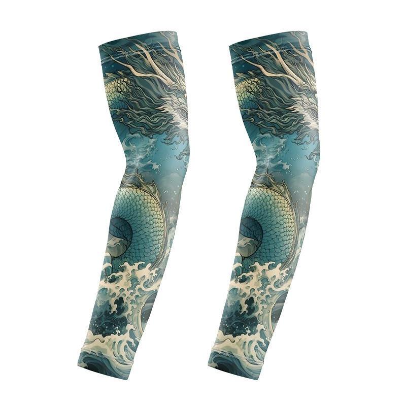 แขนสักทำจากผ้าไหมน้ำแข็งสำหรับกลางแจ้งแขนสักกันแดดแห้งเร็วระบายความร้อนระบายอากาศได้ดี