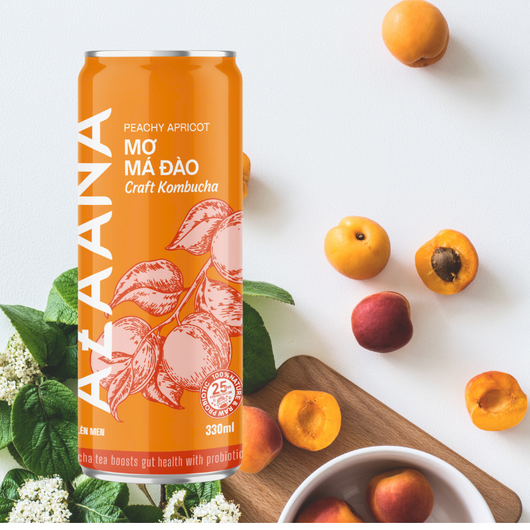 ครีมบำรุงผิวสำหรับชาคอปพีชรสแอปริคอทคอมบูชาเข้มข้นไม่ผสมแอลกอฮอล์พร้อมดื่มจากเวียดนาม