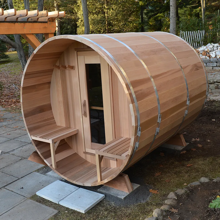 Product Name:Red Cedar Outdoor Barrel Sauna Room With Porch Rest Area