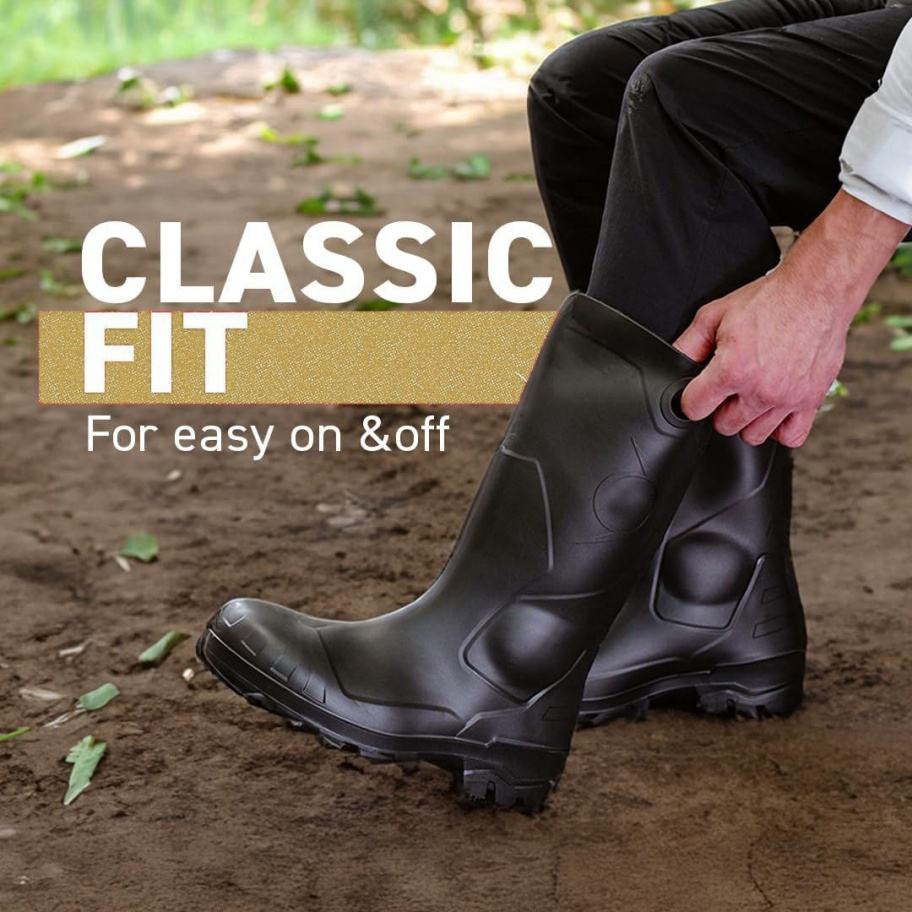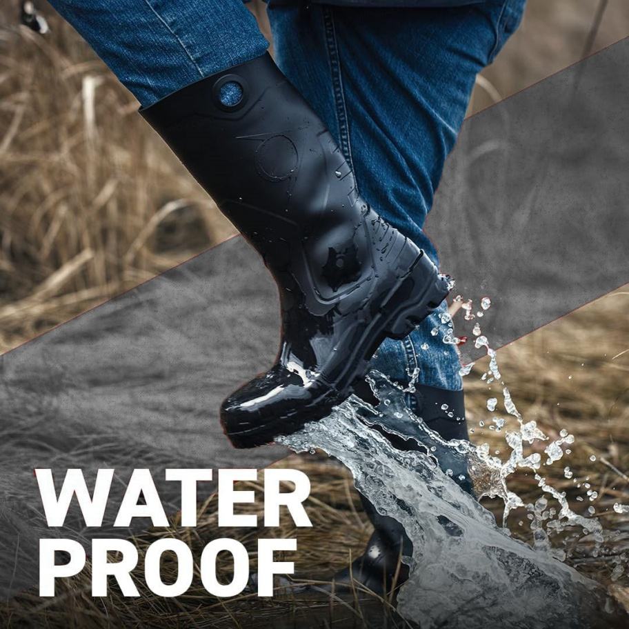 รองเท้าบูทกันน้ำแบบขายดีที่สุด สีแดงพื้นดำ ทรงยาว ไซส์ 36 ผลิตจากโรงงานโดยตรง ปรับแต่งได้ ขายส่ง มีแบบเหล็กกันทะลุ