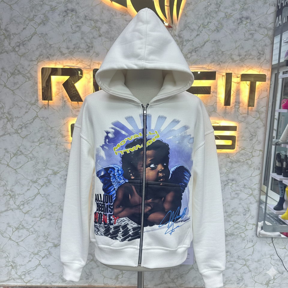 เสื้อฮู้ดสำหรับผู้ชายเสื้อฮู้ดแบบมีซิปพิมพ์ลายพัฟโลโก้ของคุณเอง
