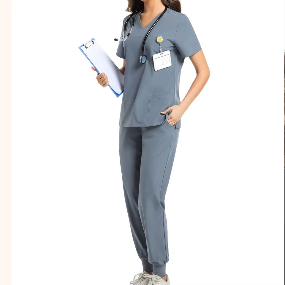 ชุดยูนิฟอร์มโรงพยาบาลระบายอากาศขายดี ชุดสครับแพทย์ลำลองสำหรับผู้หญิง ปักลายตามสั่ง ชุดยูนิฟอร์มพยาบาลแขนสั้น