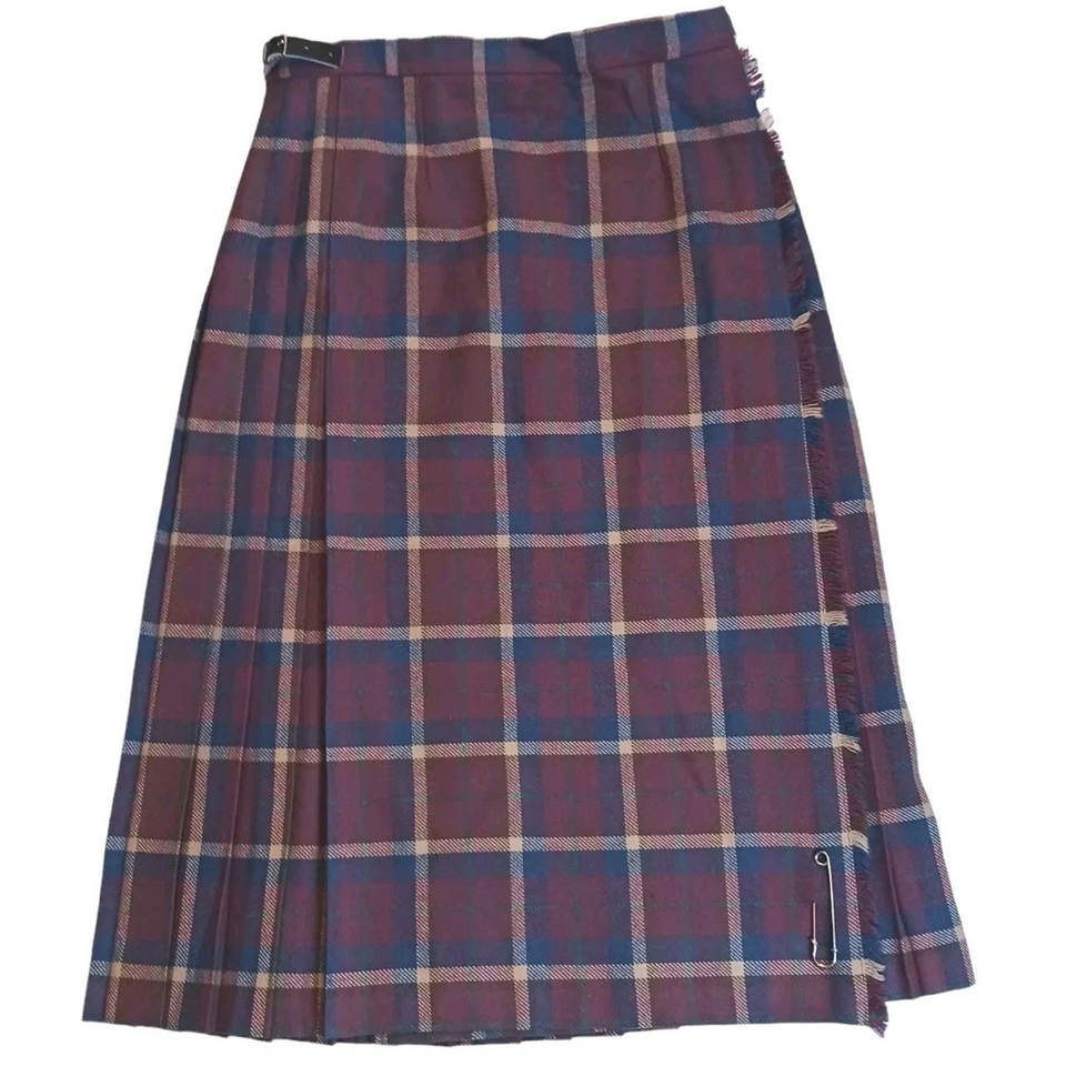 กระโปรงผู้หญิงสีแดงเลือดหมูและสีน้ำเงินขายดี ลายตารางสก็อตคลาสสิกแบบเกลนโค ชุดคิลท์สั่งตัดสำหรับเด็กผู้หญิง ปี 2026