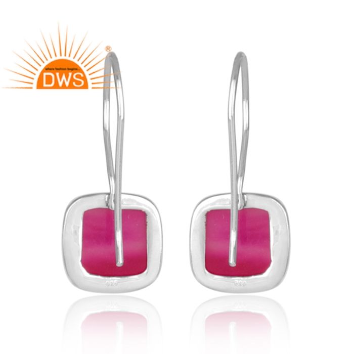 ต่างหูพลอยคาลซิโดนีสีชมพูขายดี925ดีไซน์เครื่องประดับต่างหูตะขอเงินแท้เครื่องประดับ