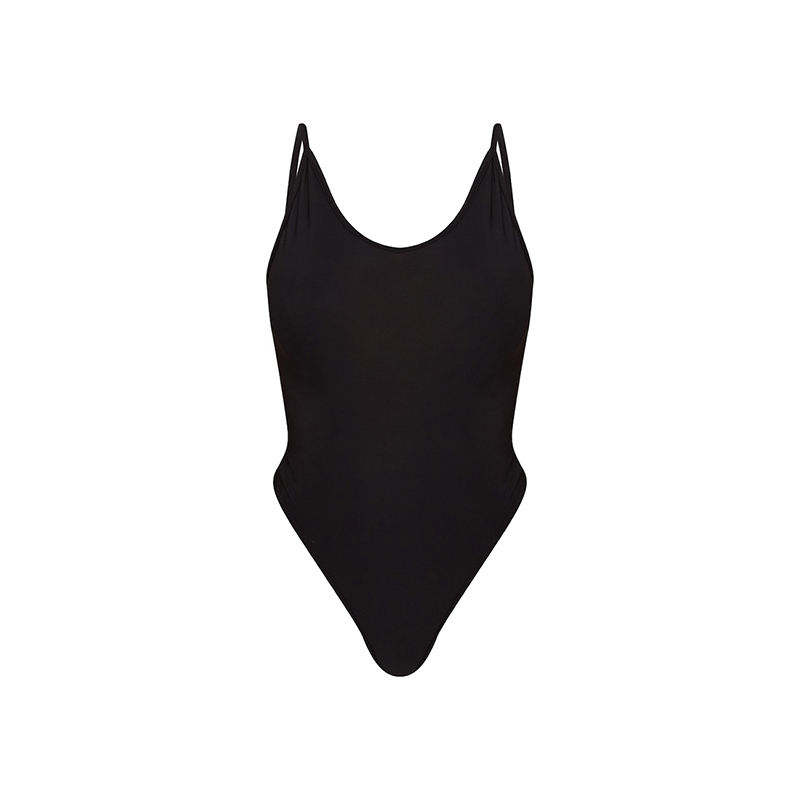 ชุดว่ายน้ำสตรีทรงสามเหลี่ยมหรูหราชุดว่ายน้ำบิกินี่สีดำล้วน