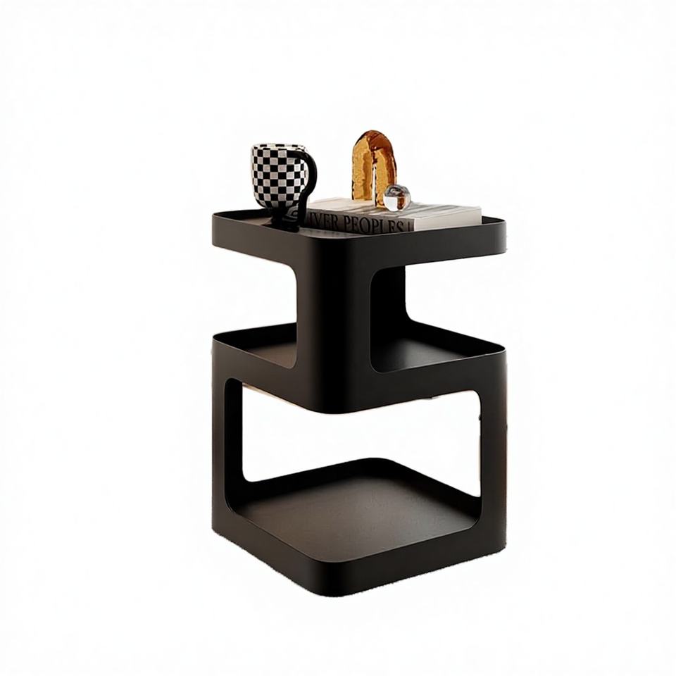 โต๊ะข้างเตียงโลหะทรงโมเดิร์น 3 ชั้น สีดำ รุ่นขายดี เหมาะสำหรับพื้นที่ขนาดเล็ก ใช้ในอพาร์ทเมนต์ได้ พร้อมชั้นวางของ