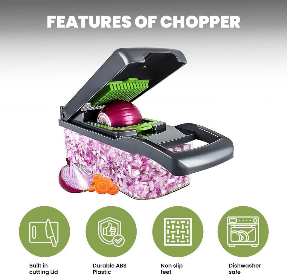 อุปกรณ์ครัวขายดี เครื่องมือครัวแบบใช้มือ อุปกรณ์ครัวและบ้าน เครื่องหั่นผักอเนกประสงค์ 16 in 1 เครื่องหั่นหัวหอมพลาสติกแบบมืออาชีพ