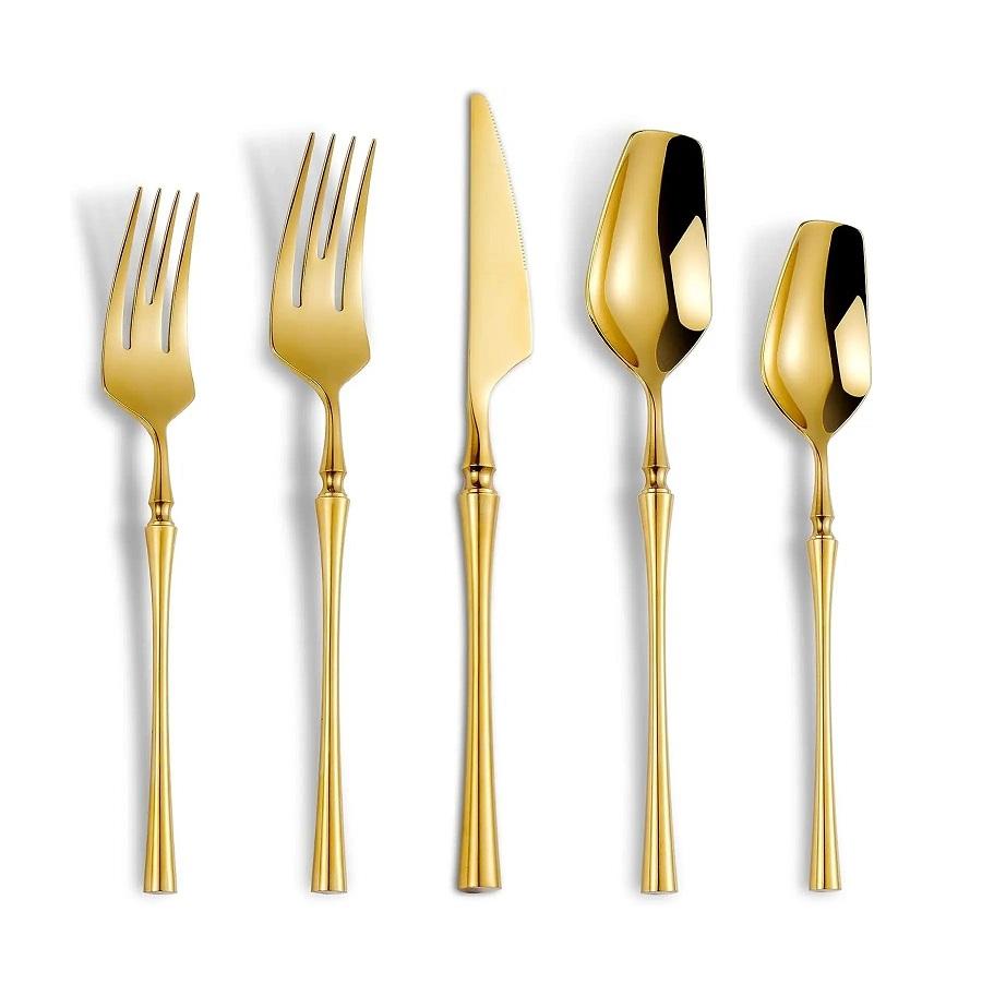 ชุดเครื่องใช้บนโต๊ะอาหารทำจากโลหะพร้อมด้ามจับสีทองสำหรับบ้านและงานแต่งงานชุดเครื่องใช้บนโต๊ะอาหาร