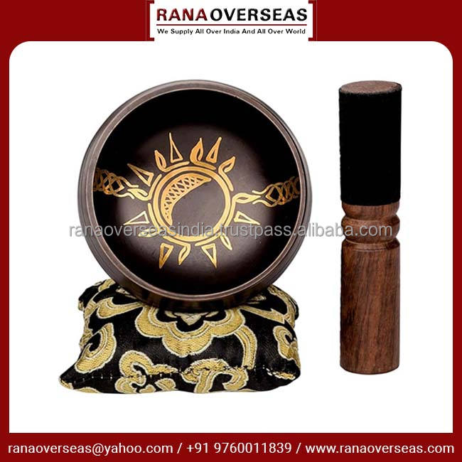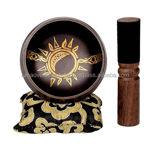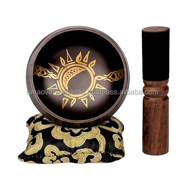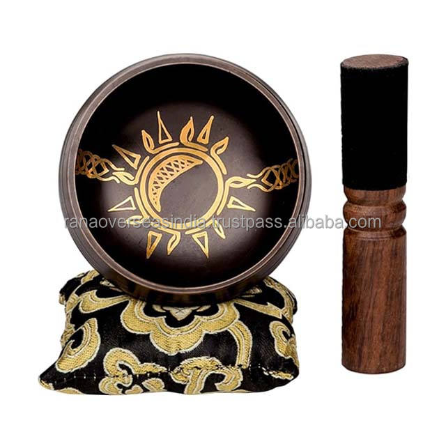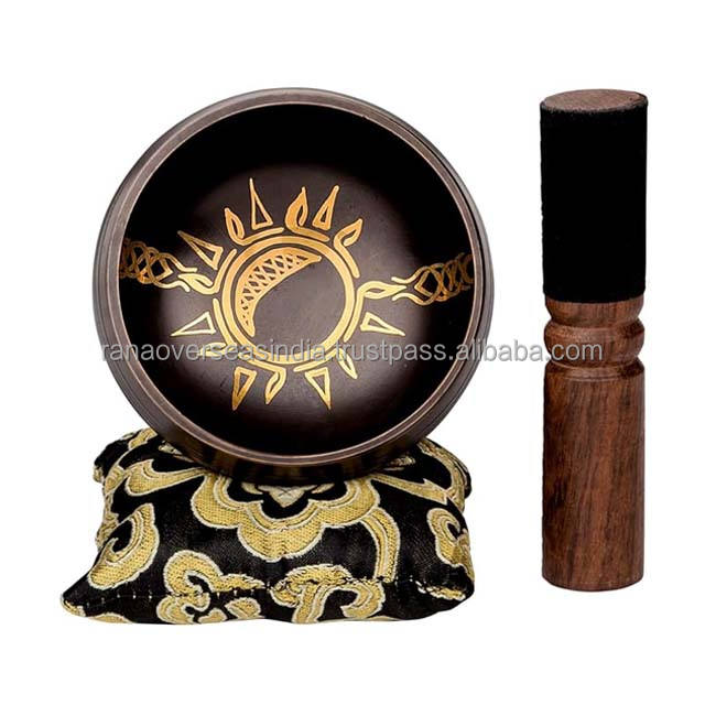 ขันเสียงทองเหลืองชุบคุณภาพสูง พร้อมเบาะรองและไม้ตีเสียง ของที่ต้องมีสำหรับการทำสมาธิบำบัดด้วยเสียง ลวดลายธีมพุทธศาสนา
