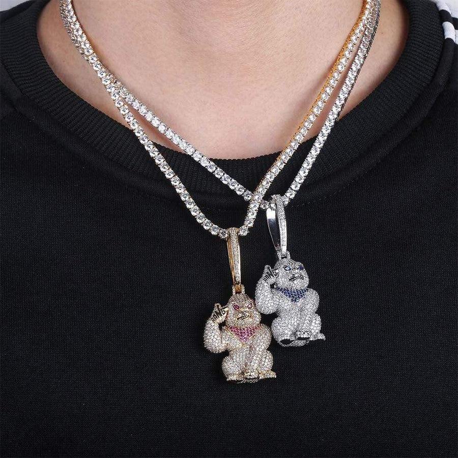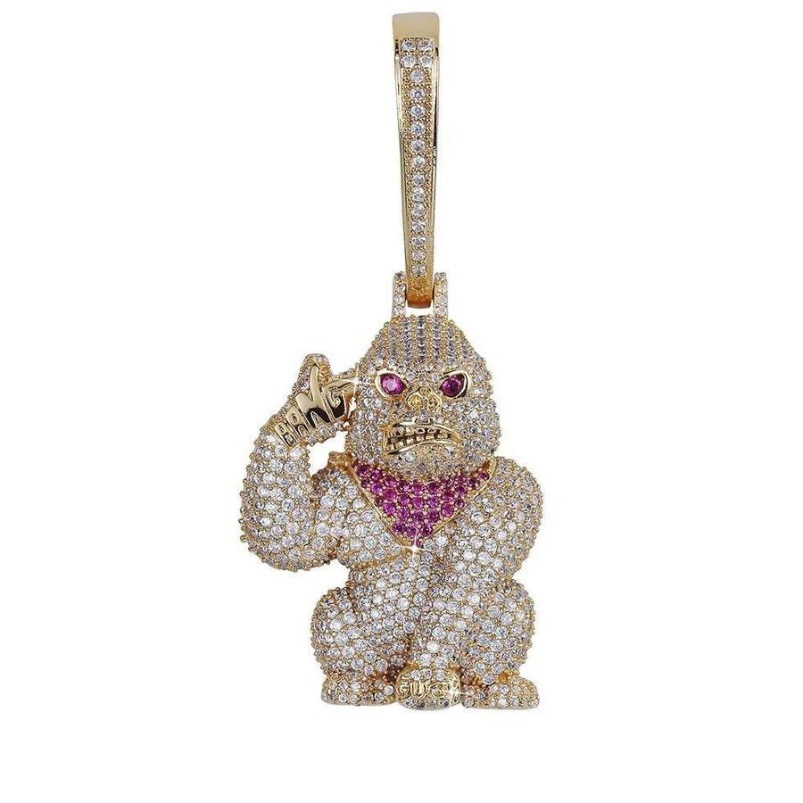 สร้อยคอจี้รูปกอริลลาแบบฮิปฮอป ชุบทองคำขาว ประดับเพชรโมอิสซาไนต์ VVS คุณภาพสูง ตัวเรือนเงินแท้ 925 ราคาถูก สำหรับผู้ชาย
