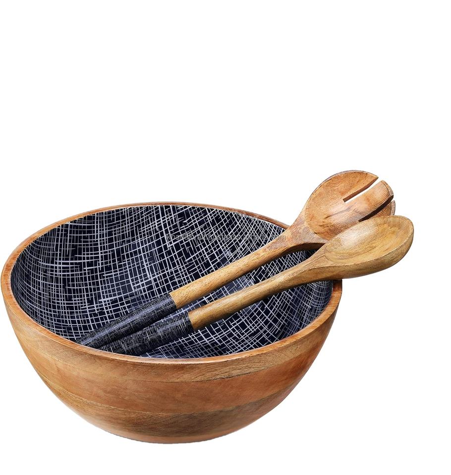 ชุดชามสลัด3ชิ้นขนาด1000มล. เป็นมิตรกับสิ่งแวดล้อม2025ไม้มะม่วงแบบโบฮีเมียนออกแบบสำหรับงานปาร์ตี้ในบ้าน