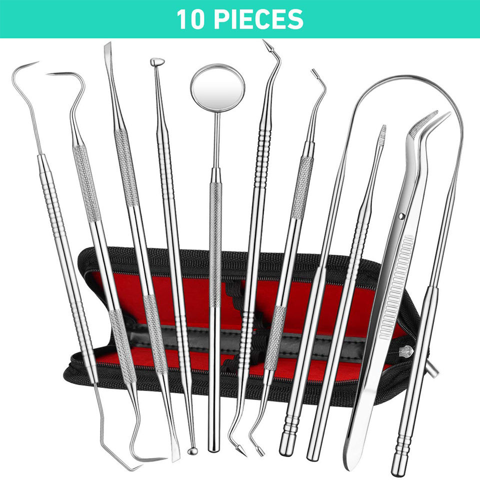 ชุดสุขอนามัยทางทันตกรรมด้วยตนเองสแตนเลสสีเงิน10แพ็คเครื่องขูดหินปูนและลิ้นฟันแบบใช้ซ้ำได้