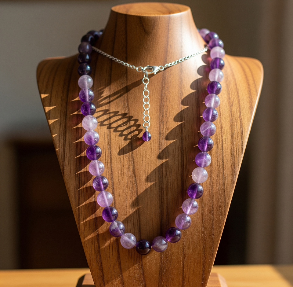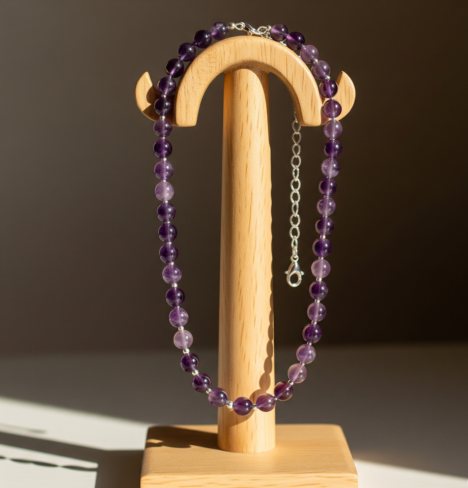 สร้อยคอเงิน925ผู้หญิงขนาด18นิ้วขายดีประดับด้วยลูกปัดหินอเมทิสต์เครื่องประดับแฟชั่นที่ทันสมัย